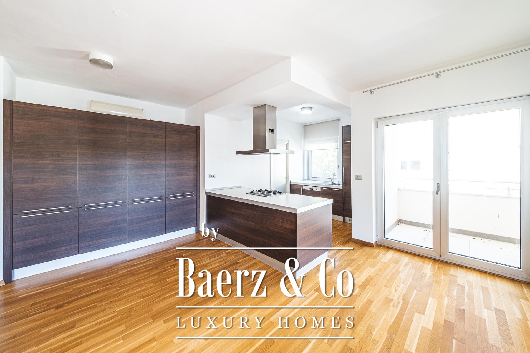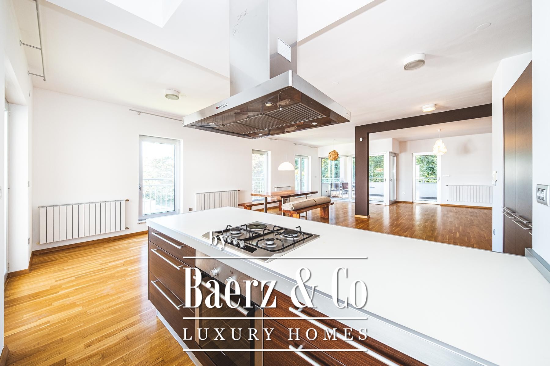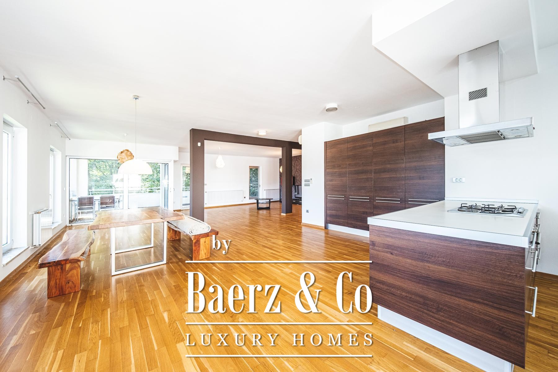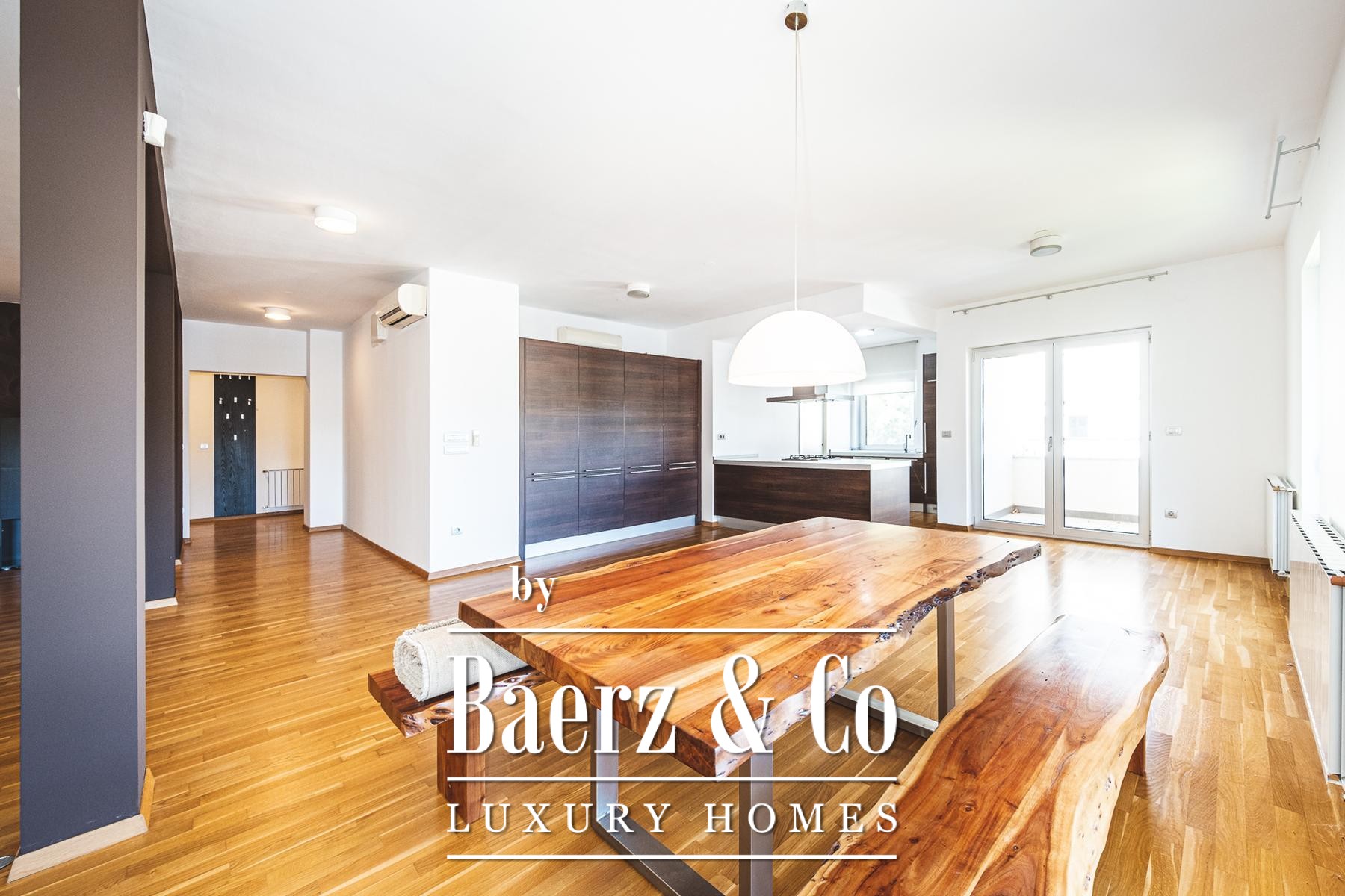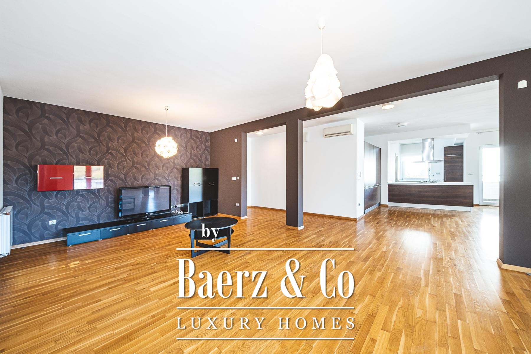Apartment Črnomerec offers 213 m² of considered living space in the serene enclave of Jelenovac. This three bedroom, three bathroom residence sits on the ground floor of a recently constructed building, delivering an atmosphere of contemporary comfort and ease. The main entrance leads to an open plan living area, where natural light flows toward the terrace, offering a seamless bond between interior and exterior. The kitchen and dining area, with access to a private balcony, provide a setting for both quiet mornings and convivial gatherings.