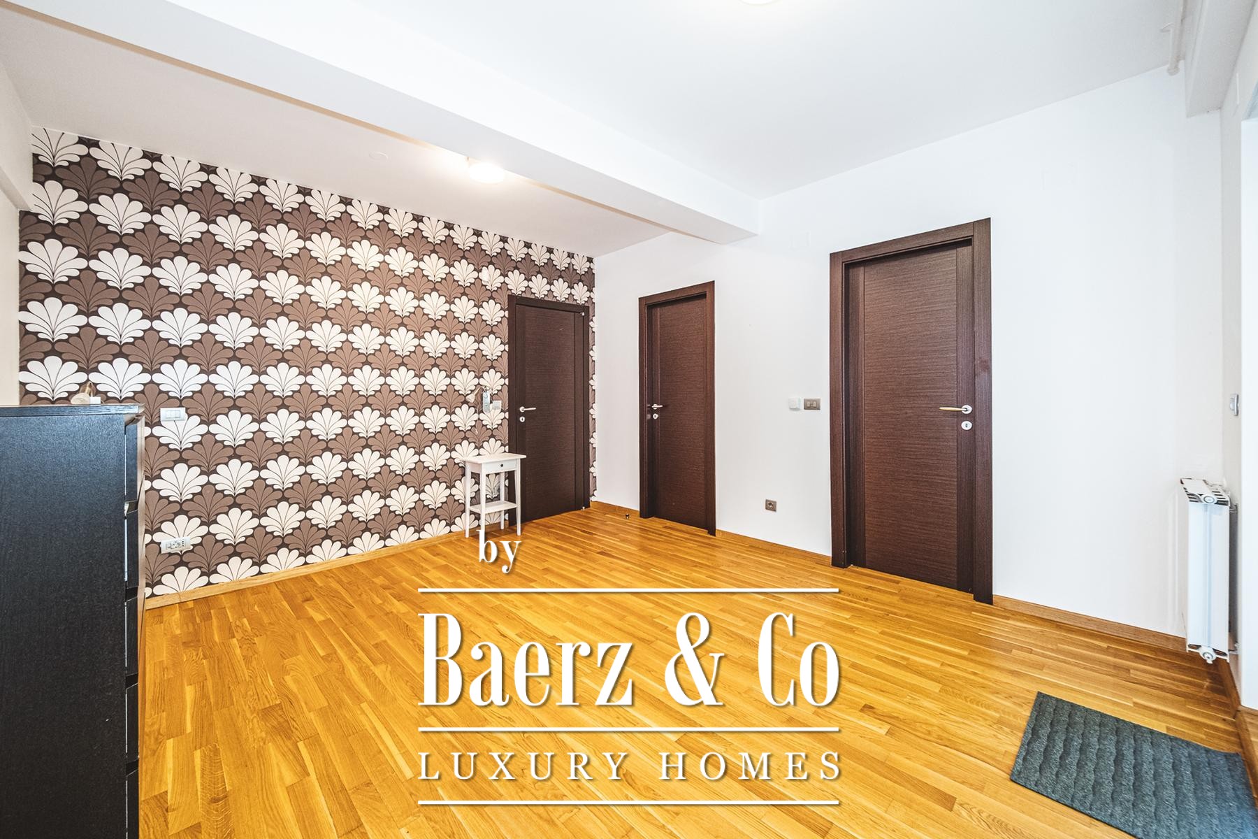 The master bedroom features a walk-in closet and an en suite bathroom, while two additional bedrooms provide versatility for family or guests. Every detail, from the lift-served building to two dedicated garages of 9.90 m² each and a separate storage room, is designed for convenience and peace of mind. Apartment Črnomerec is set in a leafy, tranquil street yet remains only moments from the pulse of the city, with public transport just 50 metres away and Ilica or the city centre a brief walk. This property exemplifies understated city living, balancing privacy and proximity in one of Zagreb’s most desirable neighbourhoods.