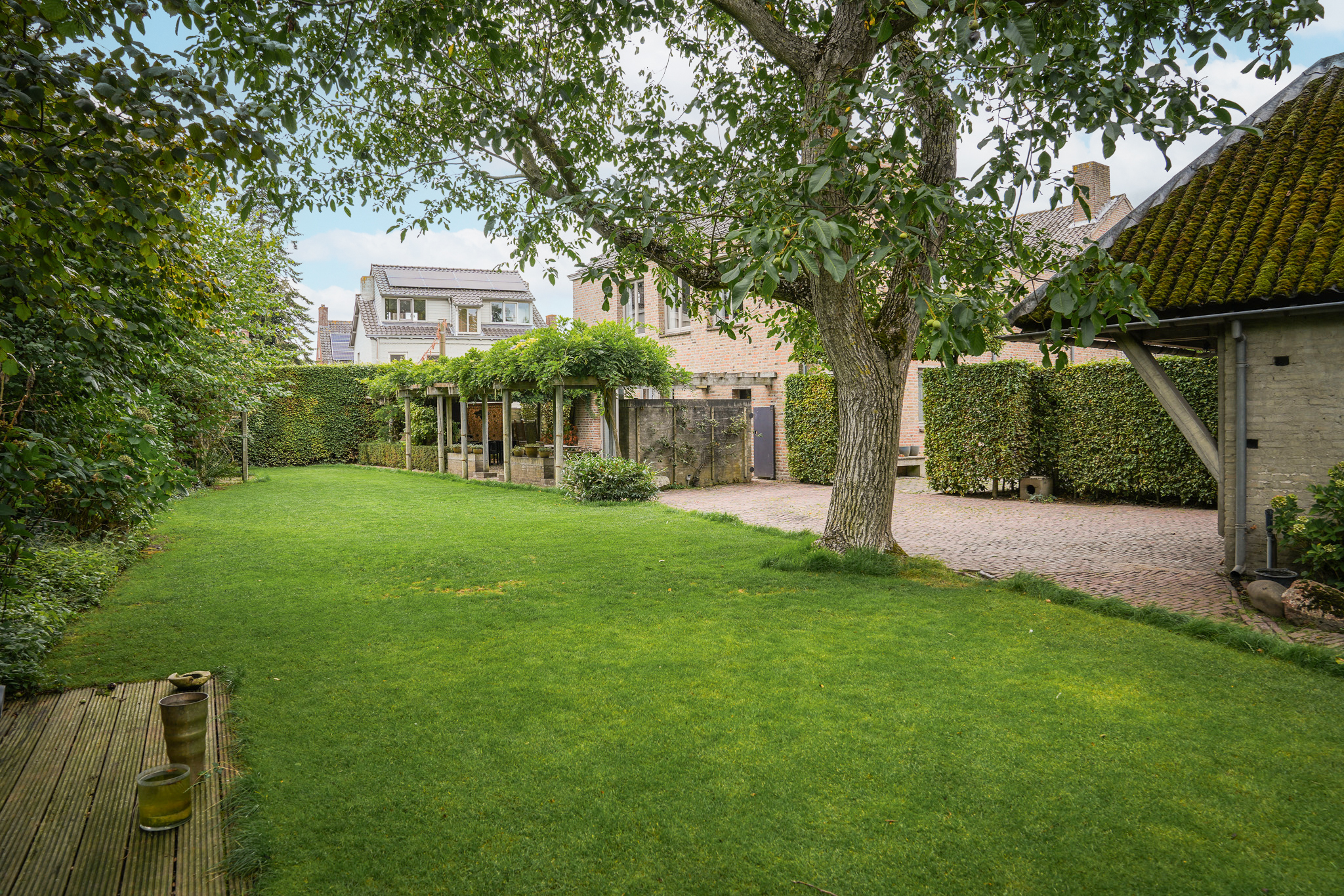 This house was built in the style of "De Bossche School" (The Bossche School). This architecture, combined with the size of the building and the plot, makes it uniquely unique in the neighborhood. The architecture guarantees residents well-proportioned spaces and beautiful views. There is a front and back house connected by a hallway and staircase. Not only the number of bedrooms but also the spacious living areas ensure a spacious and comfortable family life. The large garden surrounding the house also contributes to this. There are several terraces, a playground with mature trees, and a flower garden adjacent to the studio. This is the house the neighborhood has been waiting for. Now's your chance.