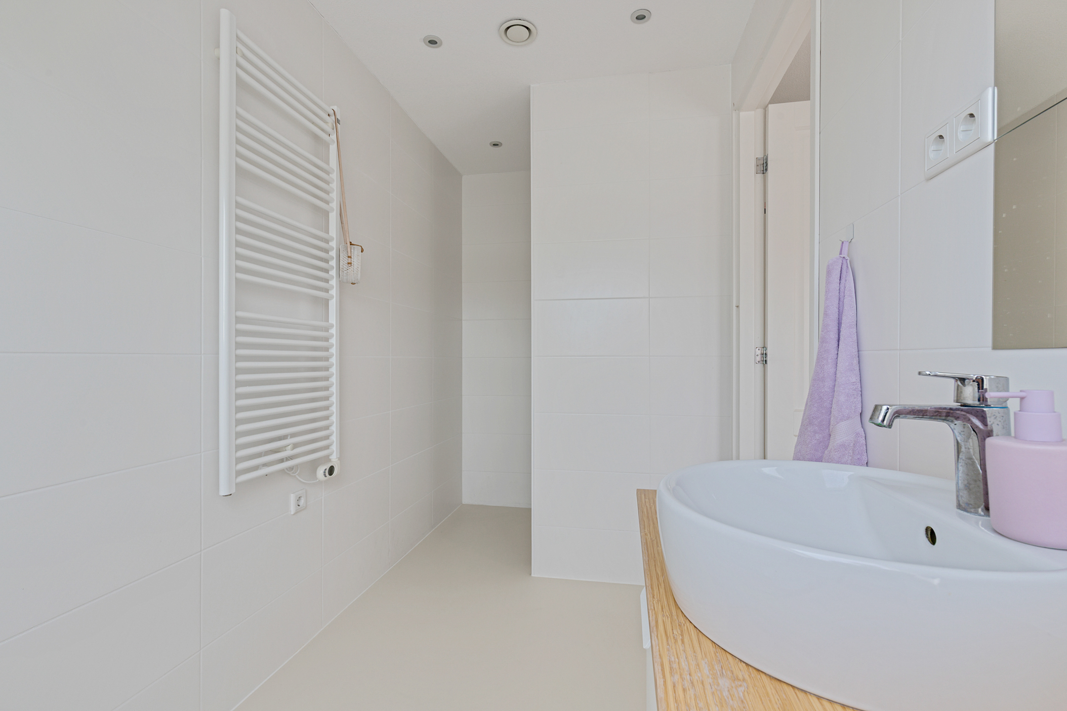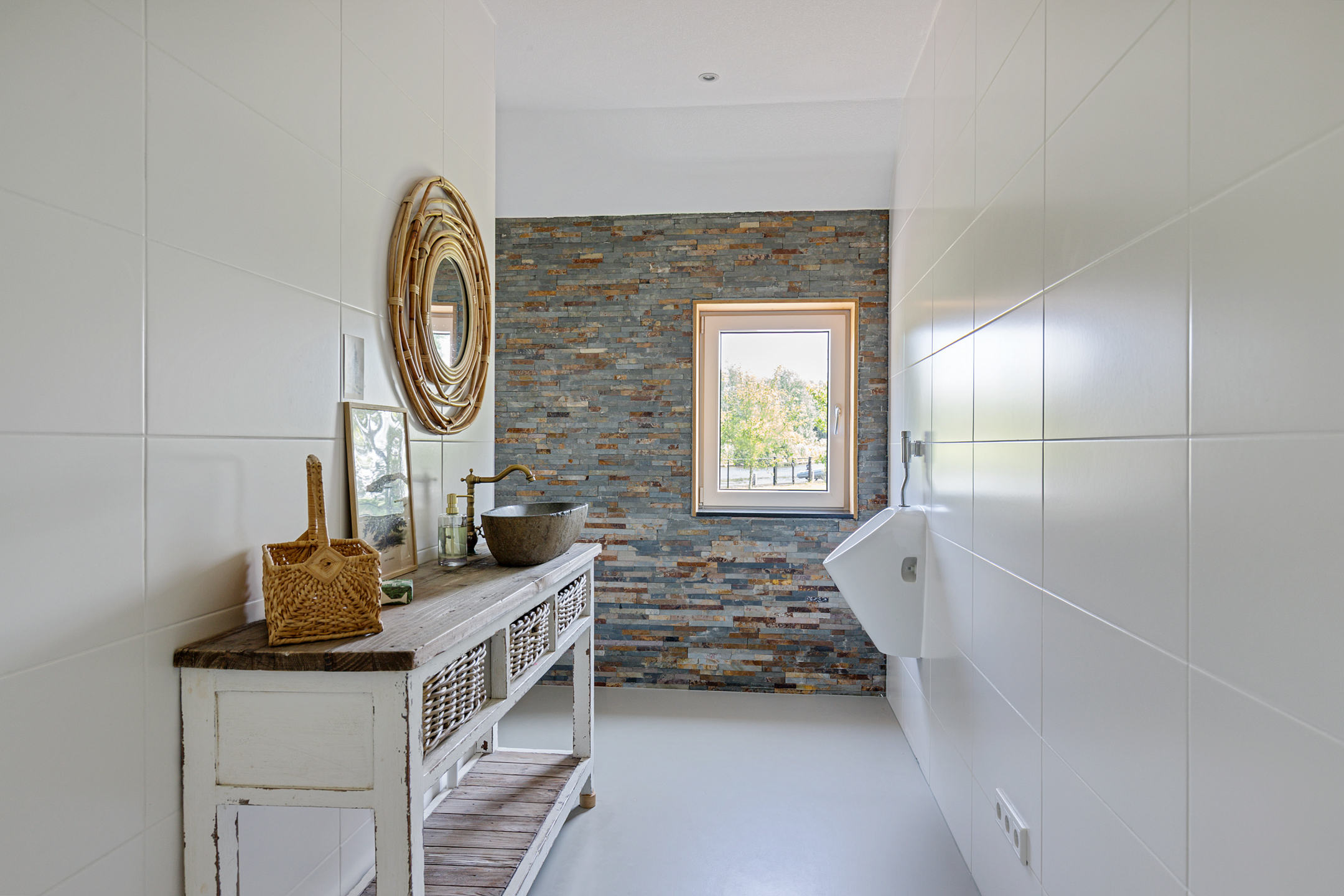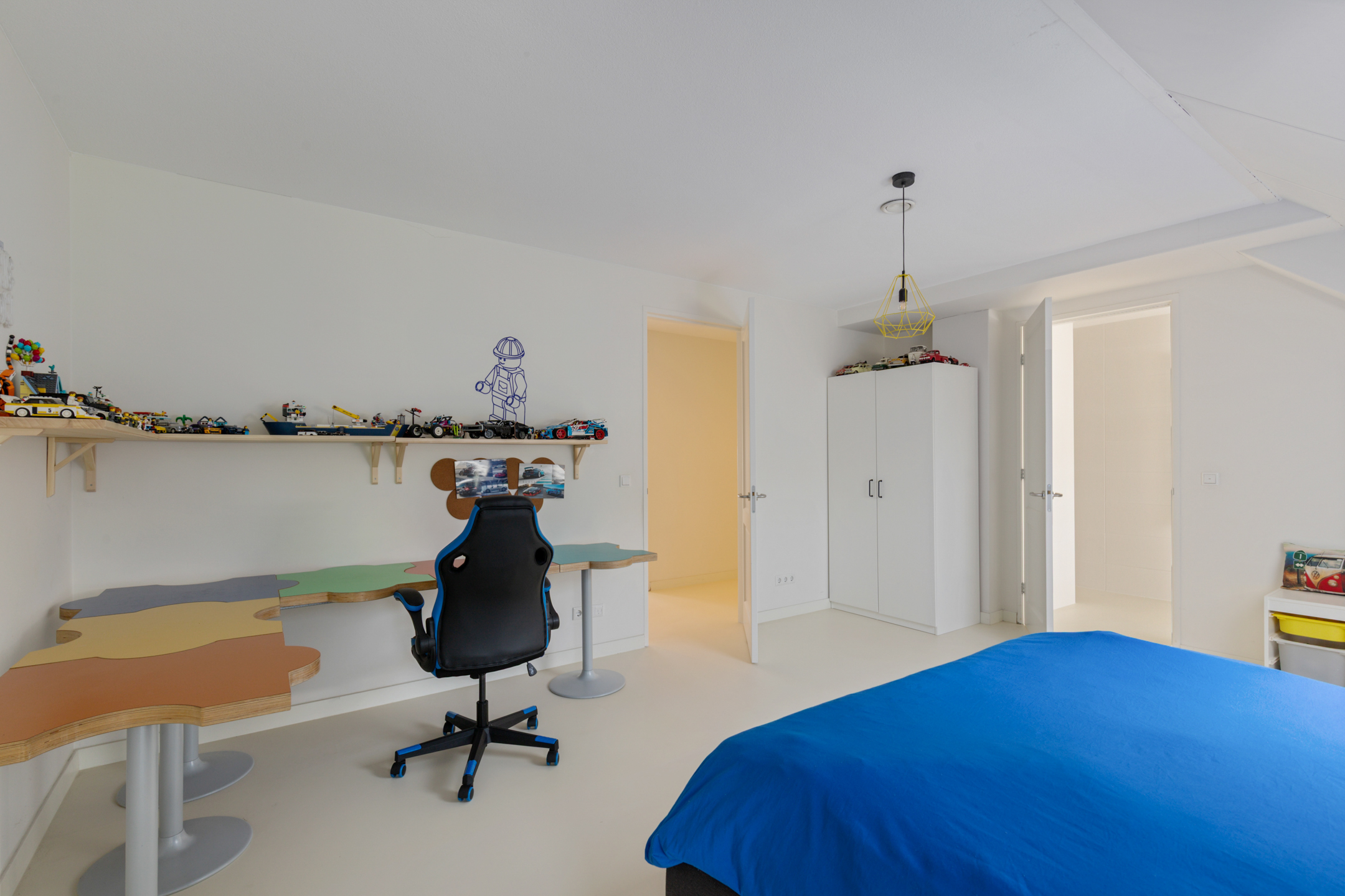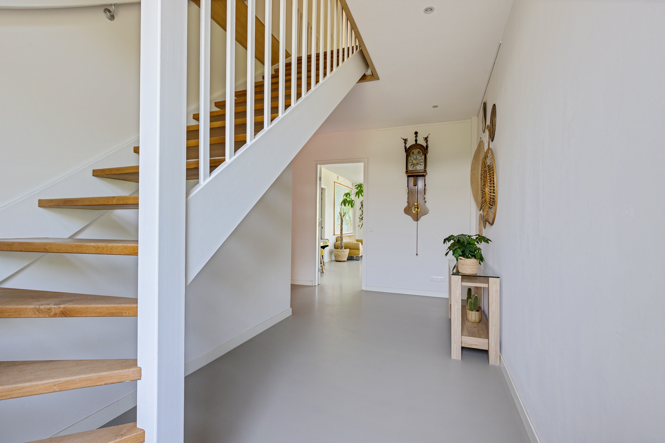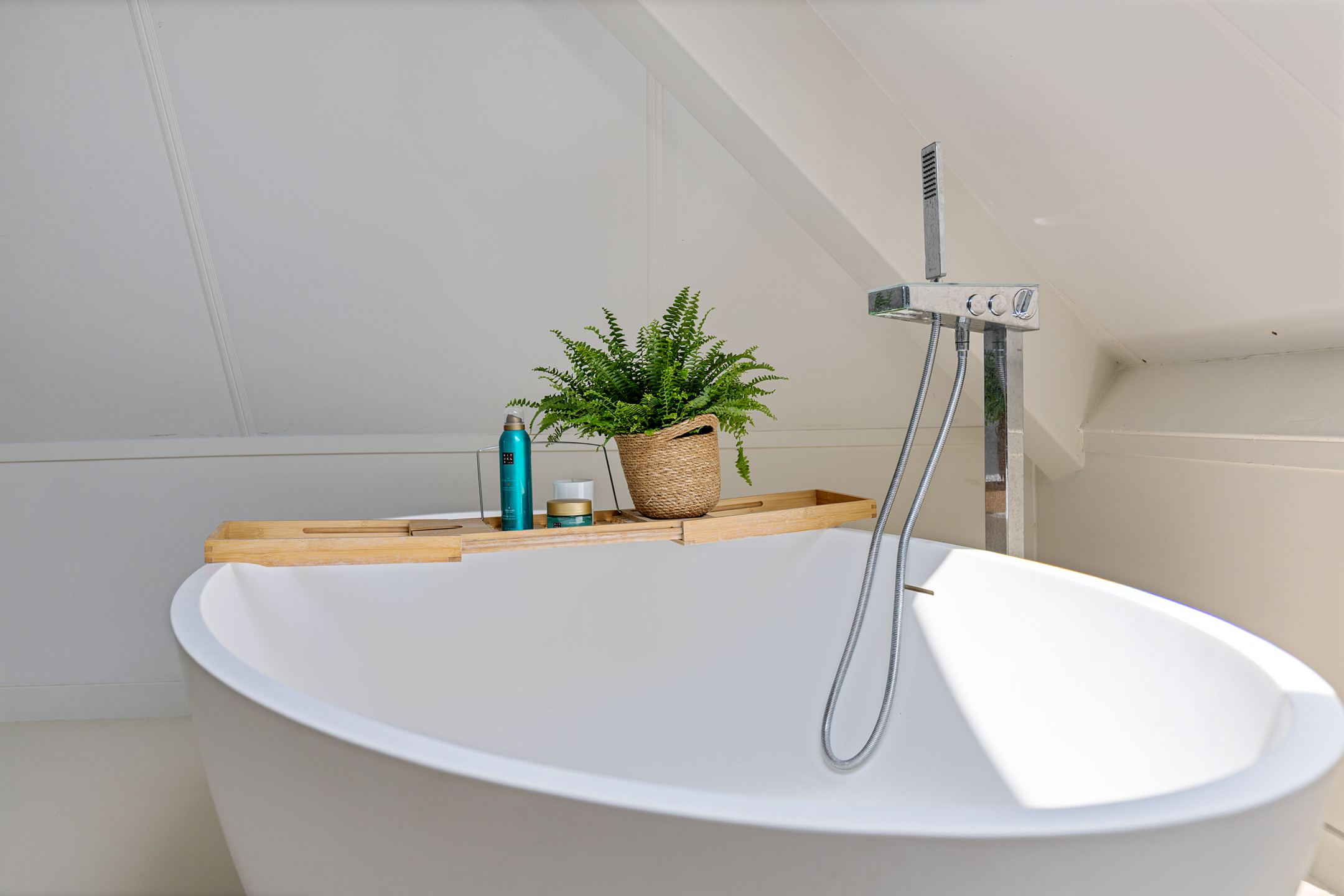 A fixed staircase leads to the fully insulated attic, with full standing height along the length of the house. Industrial steel trusses and rustic wooden beams lend this space character. Three Velux roof windows ensure ample light. Ideal as storage or for conversion into additional living or work areas.