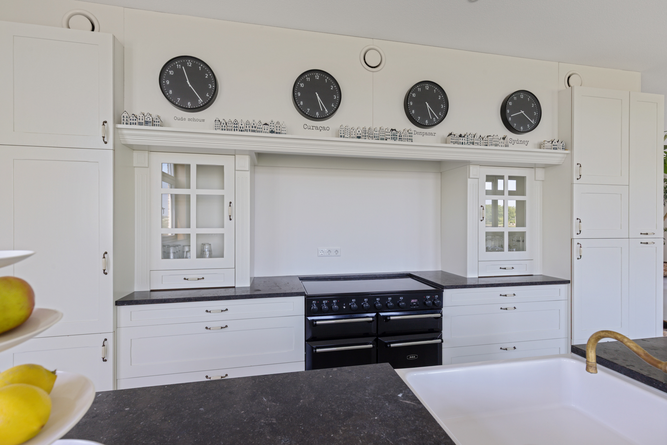 The living space is a haven of natural light, openness and views. Large sliding doors create a seamless connection to the terrace and garden, with uninterrupted sightlines to the water and surrounding greenery. The open-plan kitchen with island and ample cabinetry forms the heart of the home – a perfect spot for entertaining while watching a gentle parade of sailboats and sloops pass by.