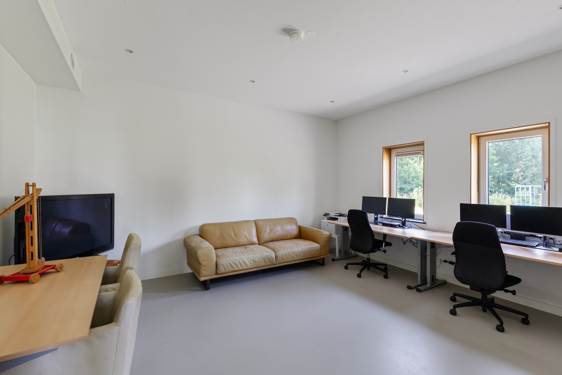 Next to the living area is a home office or playroom overlooking the garden. The generous utility room is practically equipped with laundry connections.