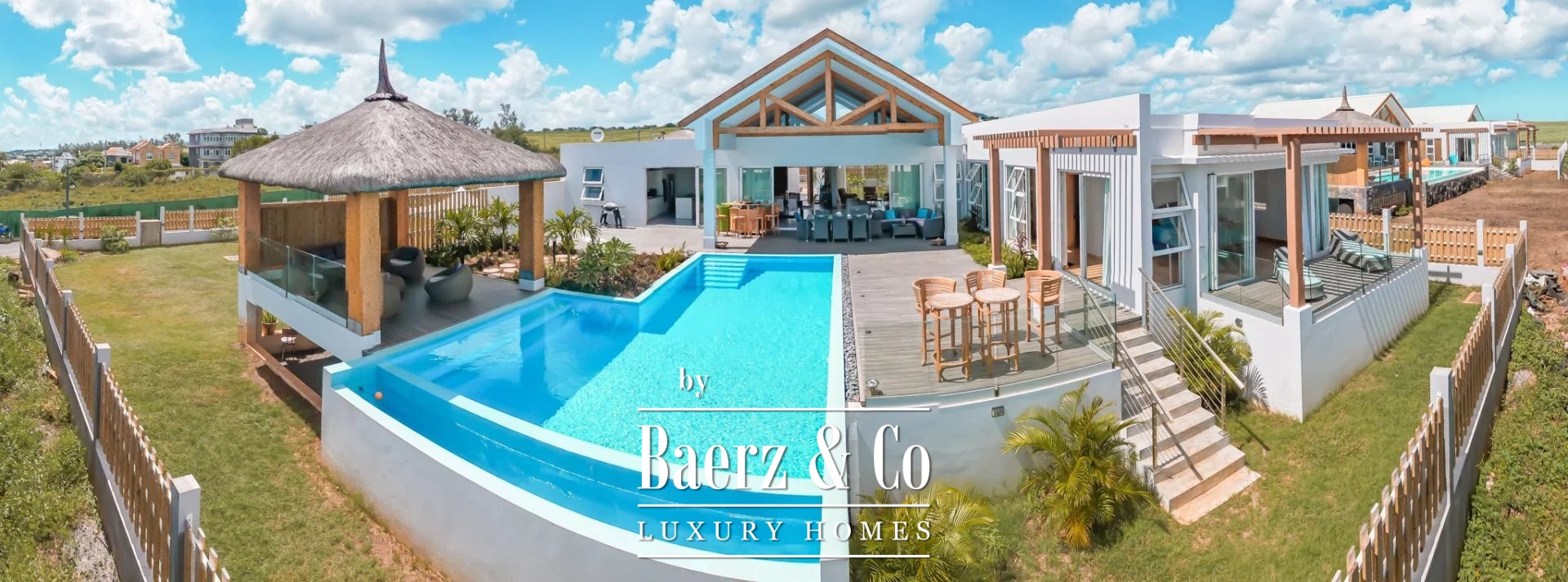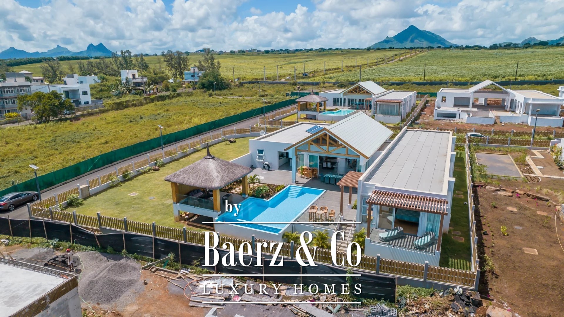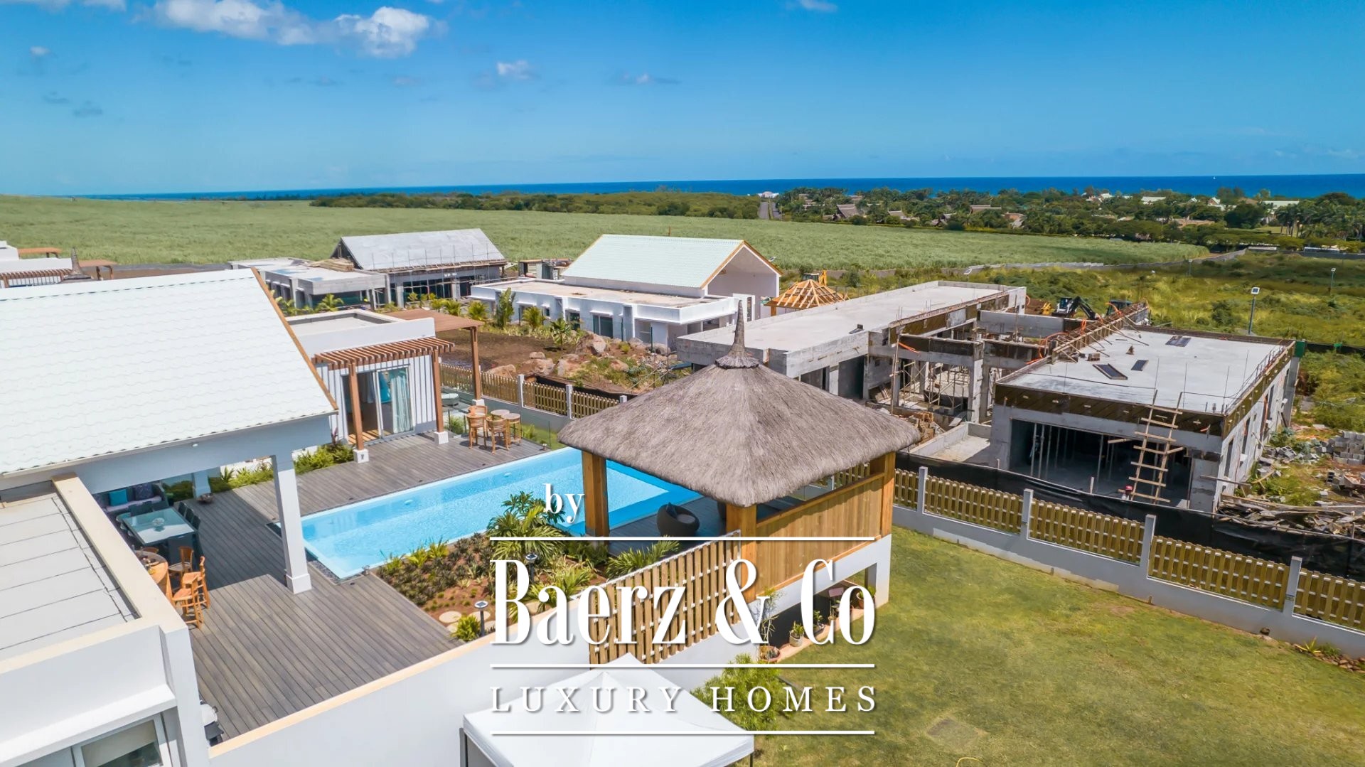 Luxury villa Albion Mauritius presents a rare blend of modern architecture and generous proportions on the west coast of Mauritius. This 552 m² residence is situated in a newly established residential enclave in the heart of Albion, where privacy and security form the backdrop for elegant daily living.