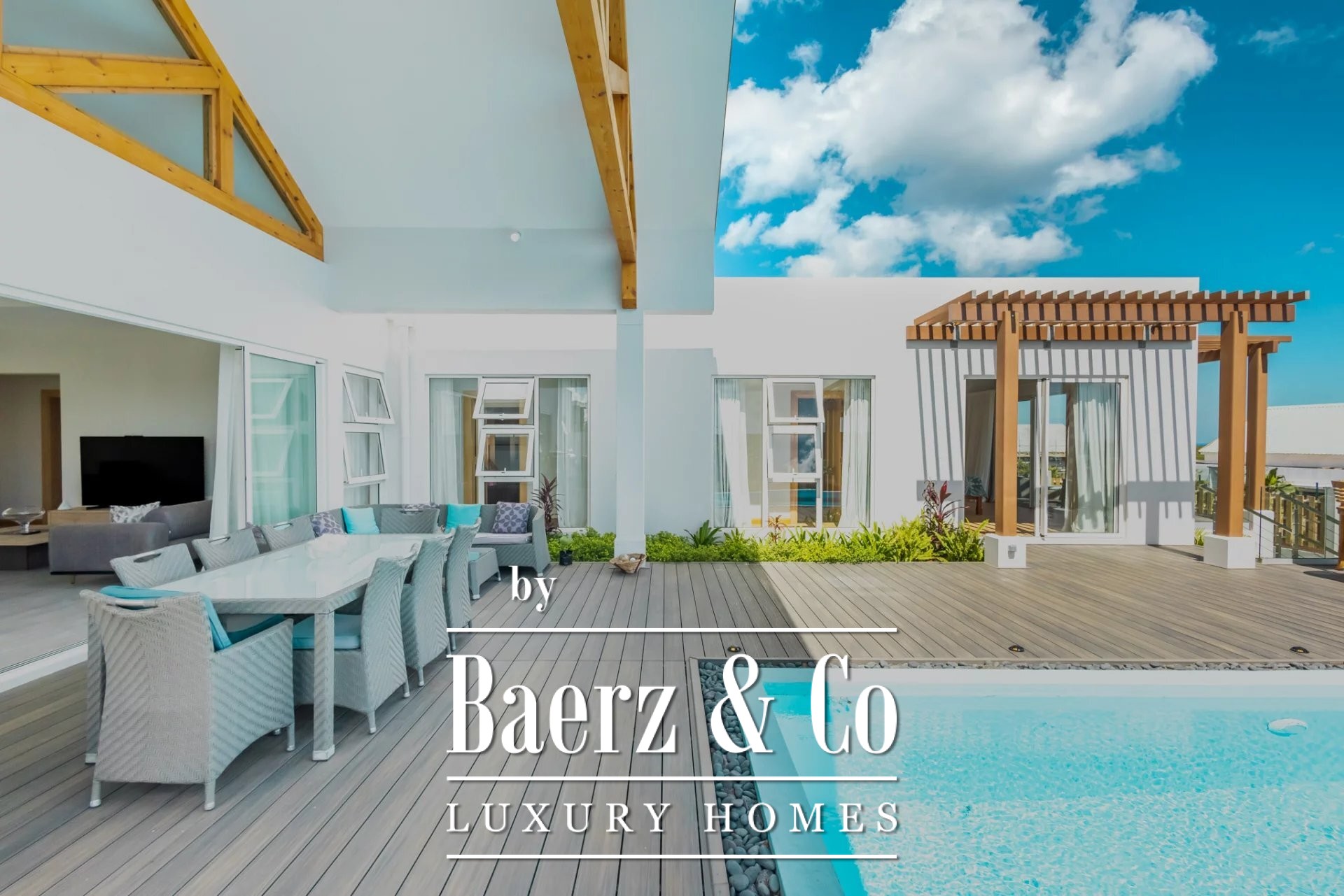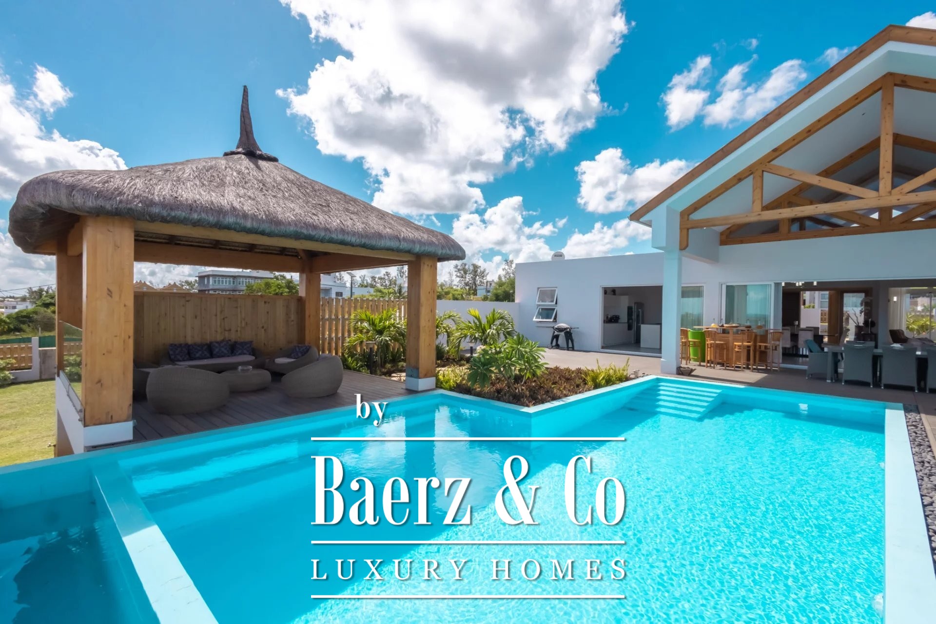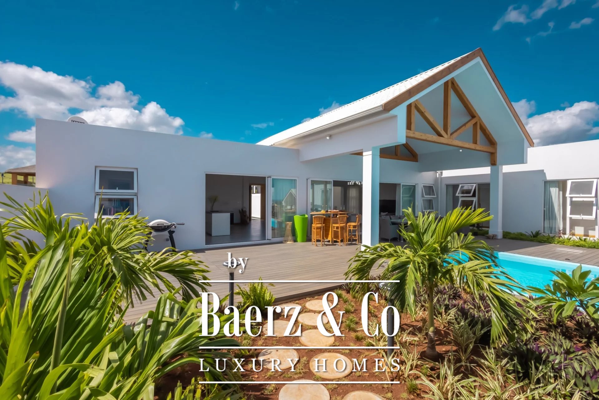 Luxury villa Albion Mauritius presents a rare blend of modern architecture and generous proportions on the west coast of Mauritius. This 552 m² residence is situated in a newly established residential enclave in the heart of Albion, where privacy and security form the backdrop for elegant daily living.