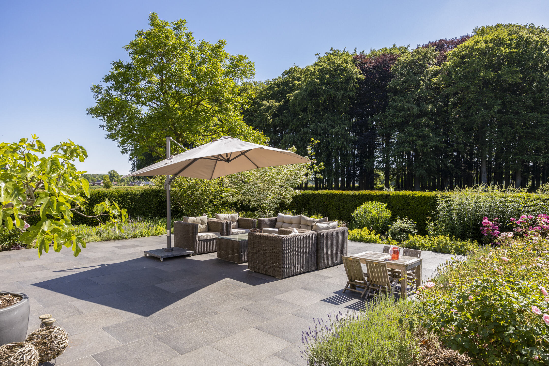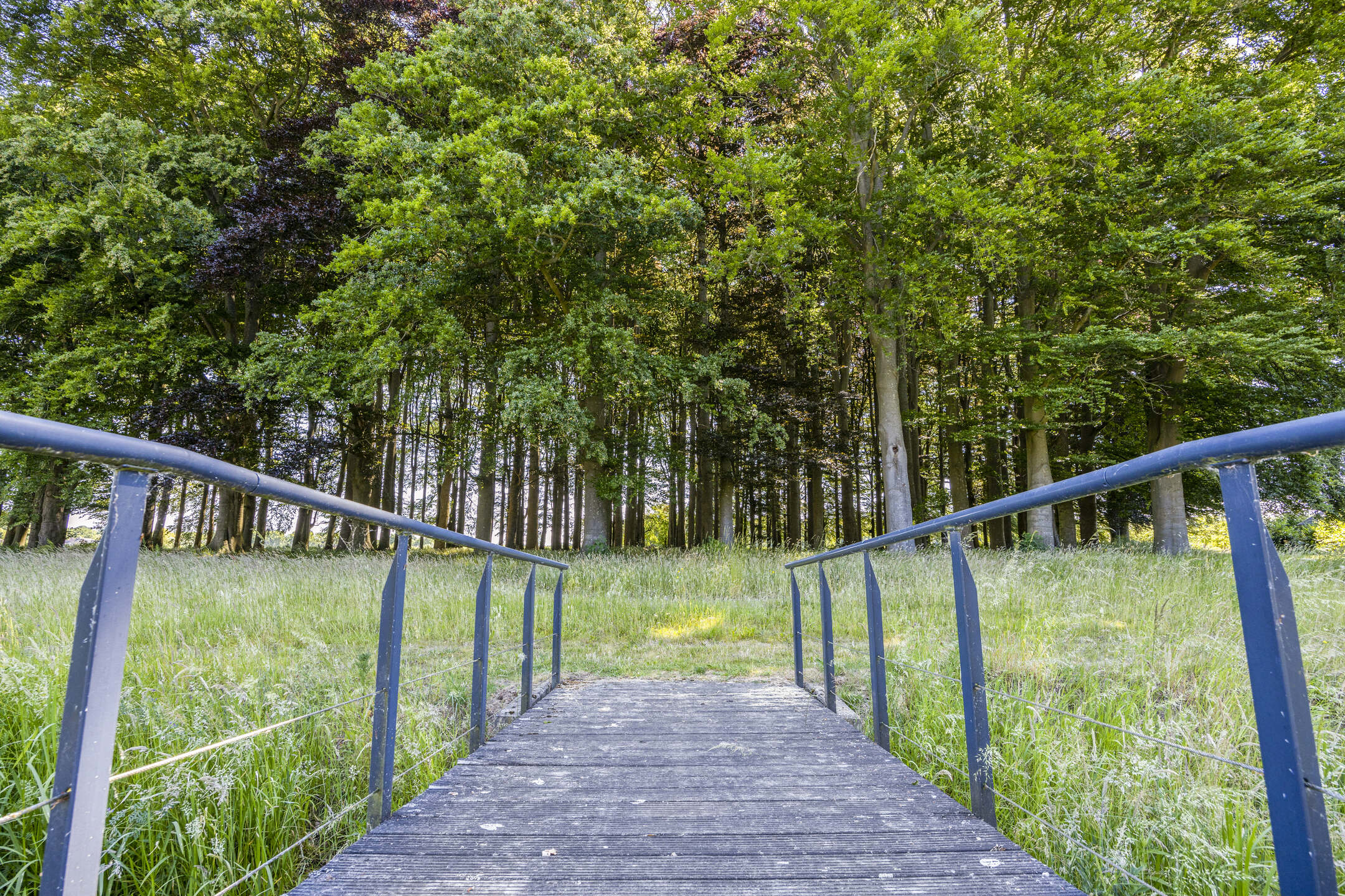 When an agency like Eelerwoude gets involved in landscaping, you just know it's going to be okay. And so it did. The gardens around the house are once again bordered by the moat, through which the crystal-clear water of the Berkel gaily splashes. From the house, living is focused on the Berkel and the village beyond. On the right side you have a view of the beech forest, where you can go via the little bridge to take a walk; between the trees is a path.