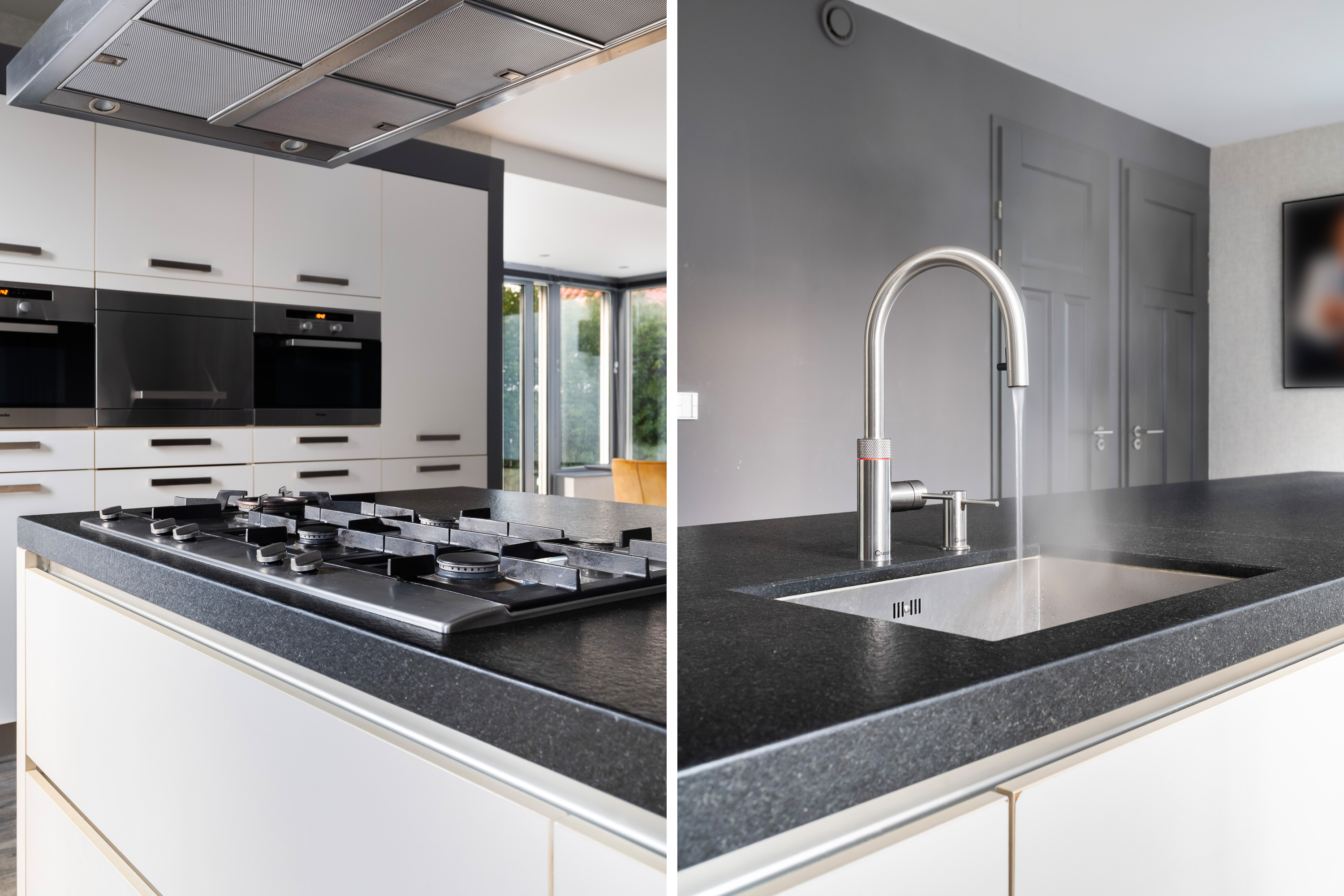 Luxury kitchen with cooking/seating island, Quooker and water purification system