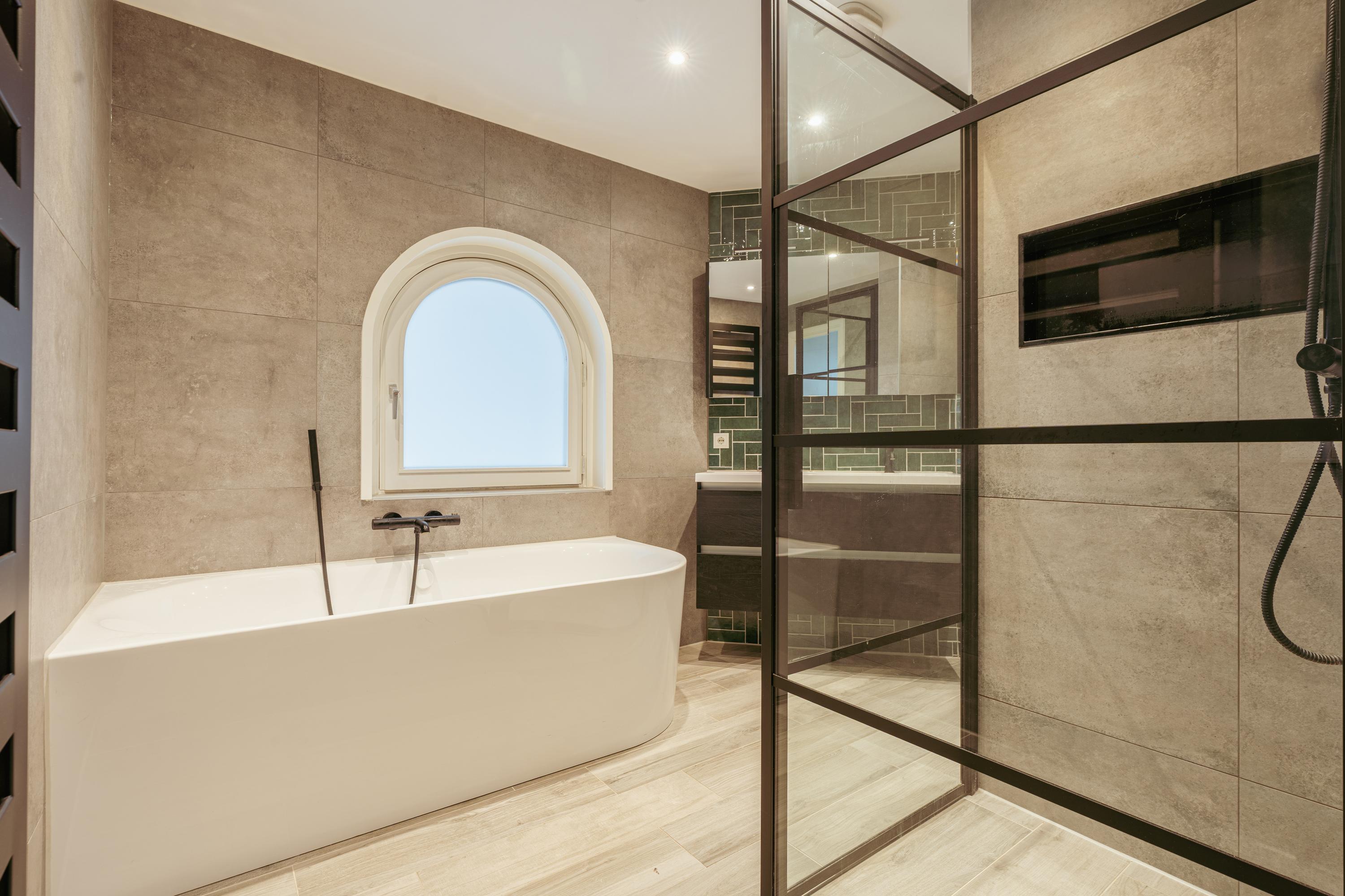 At the rear you will find the kitchen-diner, a pleasant and quiet space ideal for gathering and enjoying long dinners. The kitchen features a cooking island and Siemens built-in appliances, including an oven, steam oven, refrigerator, freezer, dishwasher, Quooker tap and a five-burner gas stove. French doors provide access to the rear balcony and ensure abundant natural light here as well.