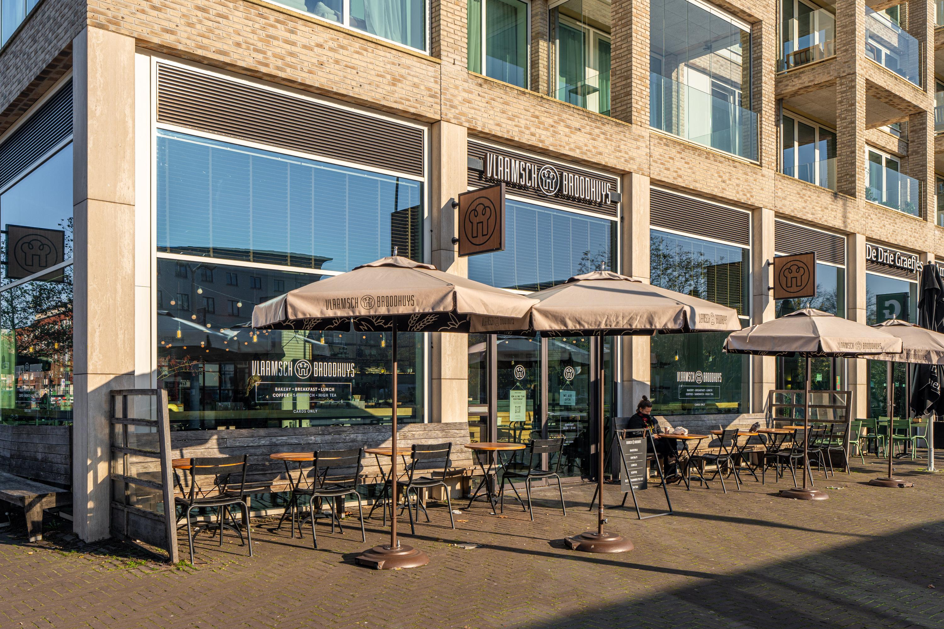 The spacious living area forms the heart of the apartment: an impressive L-shaped living room extending from the front to the rear of the property. Large windows at the front provide beautiful natural light. French doors open onto a charming balcony with open views over the lively Stadionplein. The generous layout offers various possibilities for furnishing and arrangement.