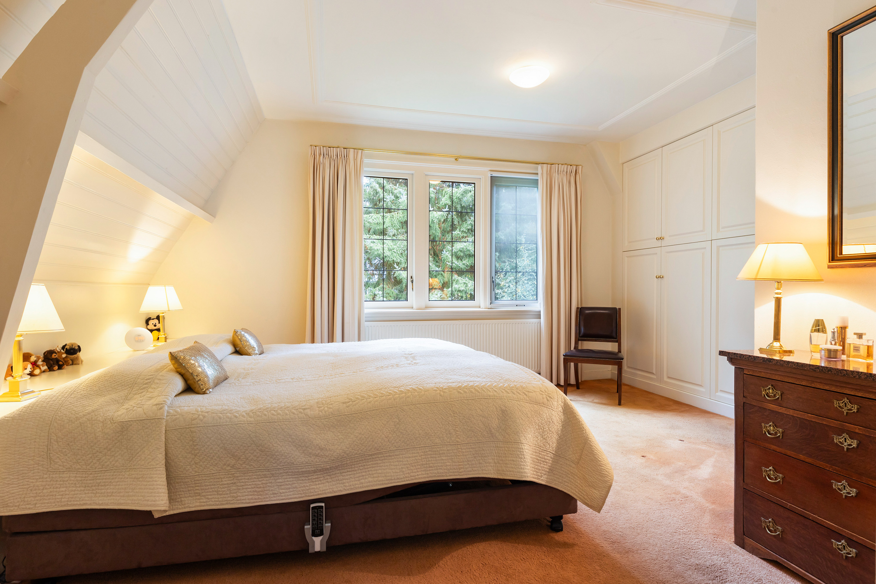 The villa exudes understated grandeur, enhanced by the distinctive windows with insulated glazing in wooden frames, the carefully restored wooden sills, and authentic architectural details that have been lovingly preserved. The garden lighting features original old lanterns from Paleis Het Loo – a unique and elegant accent that lends the property its special allure.