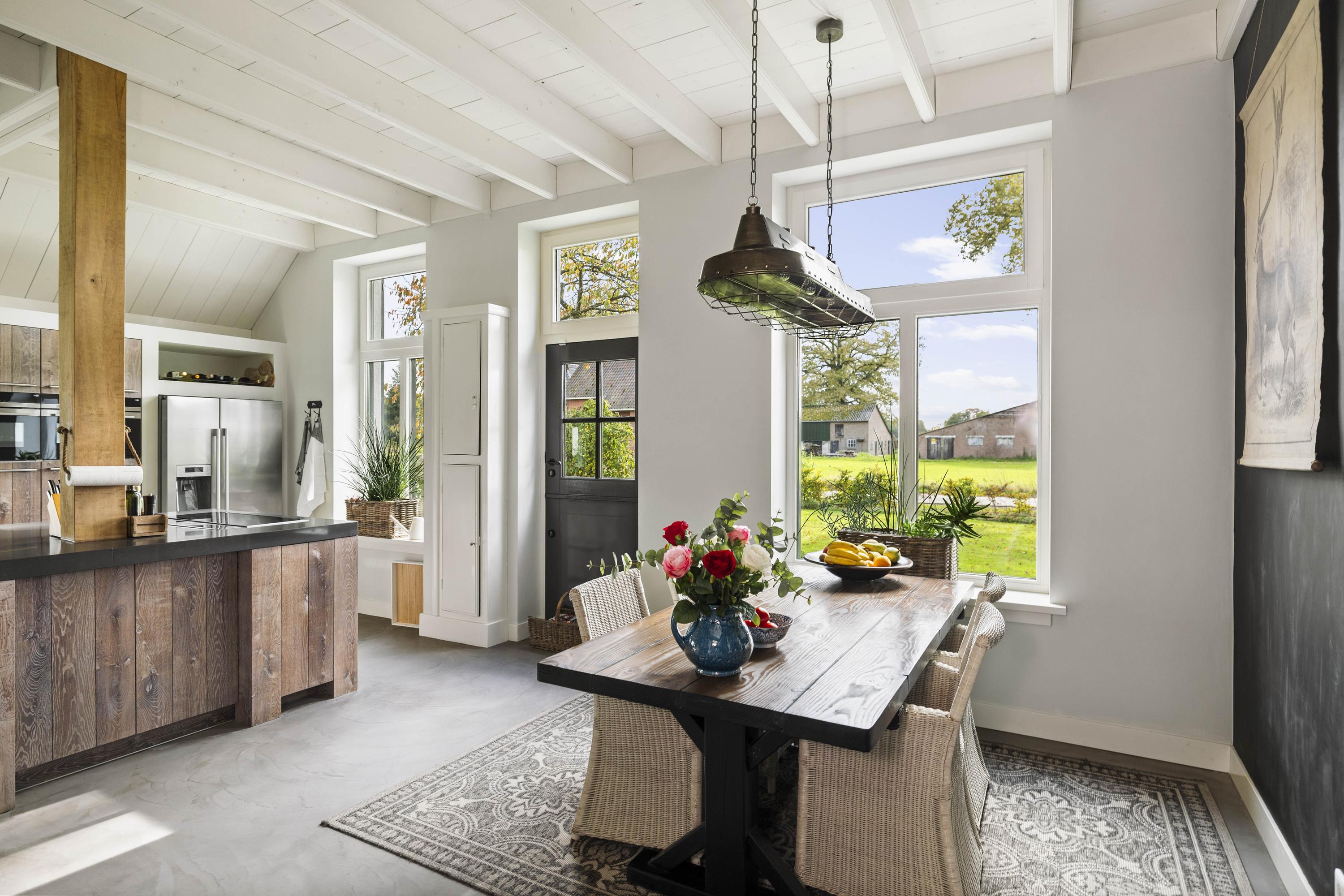 The kitchen is custom-made by Scheffer Keukens Zelhem and is nothing short of impressive; with a thick composite worktop, robust solid oak fronts and all modern built-in appliances – from induction hob to Quooker – it is a wonderful place to indulge your inner chef. The old fireplace still has a sturdy Nordic Fire wood-burning stove, which provides the kitchen with extra atmosphere and warmth.