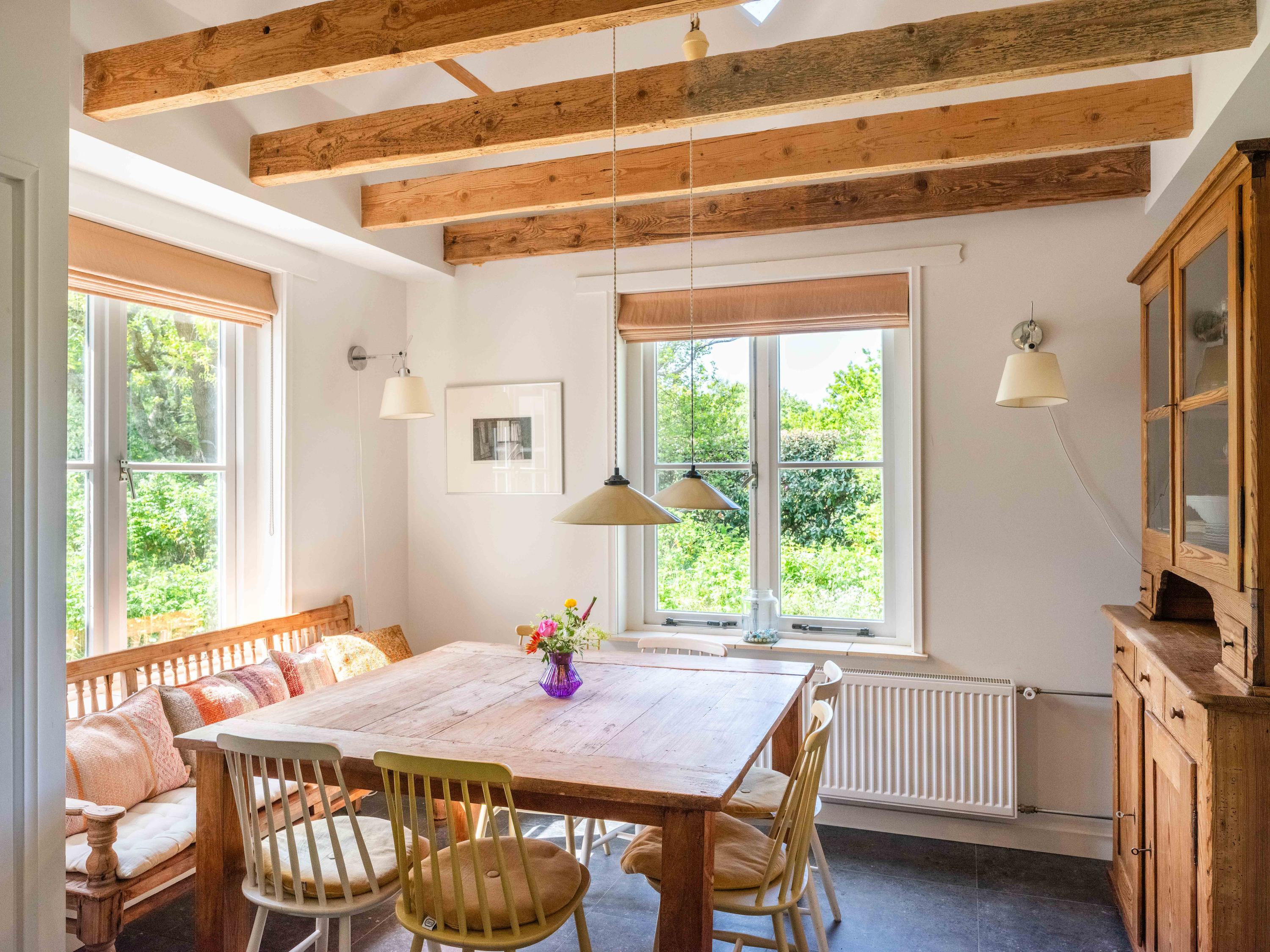 The kitchen is a lovely place for the whole family, equipped with all conveniences: a Quooker, dishwasher, extractor hood, large oven with induction hob and a separate fridge-freezer. The kitchen also provides access to the meter cupboard.