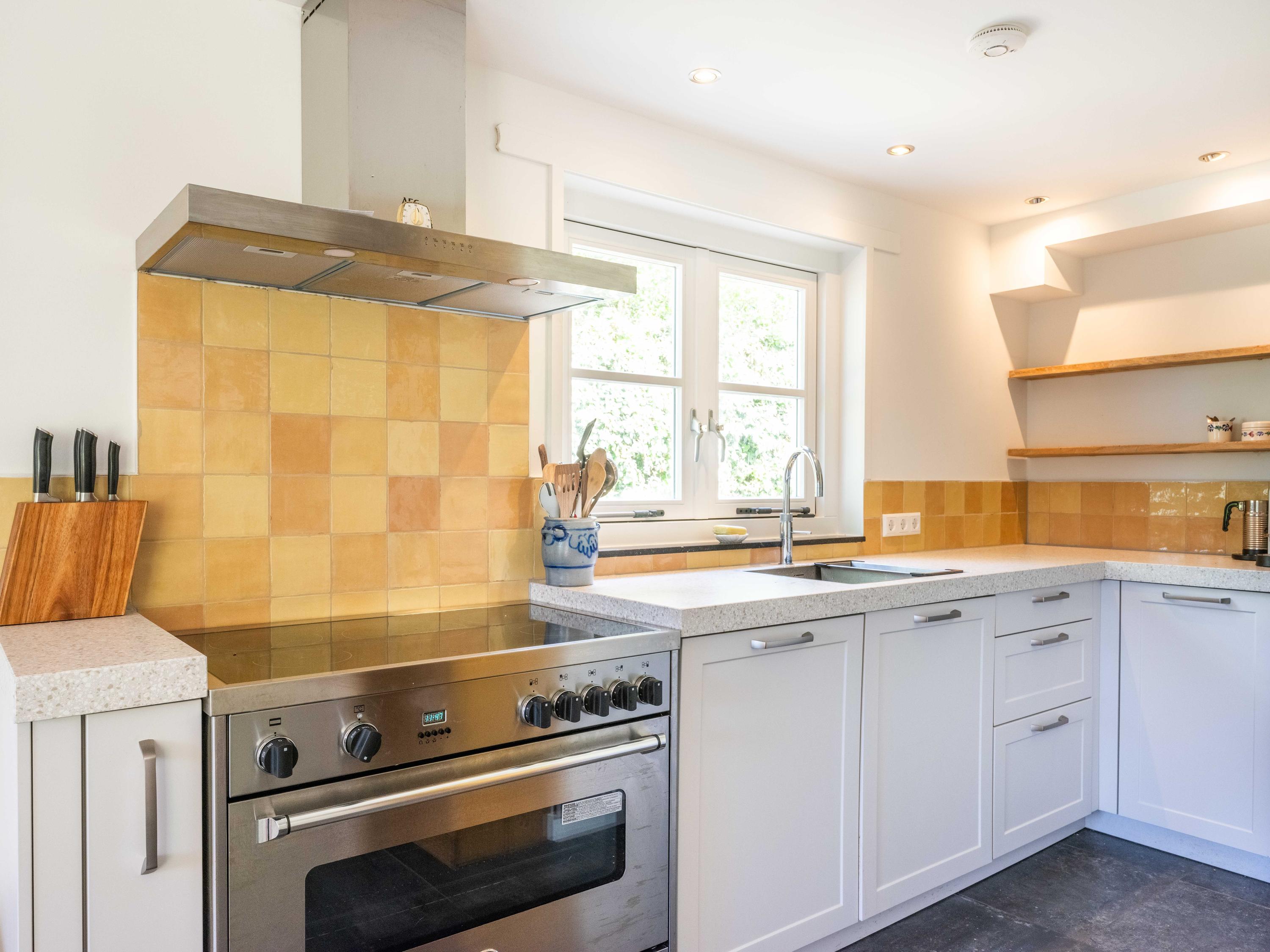 The kitchen is a pleasant place for the whole family, equipped with all conveniences: a Quooker, dishwasher, extractor hood, large oven with induction hob and a separate fridge-freezer. The kitchen also provides access to the meter cupboard.