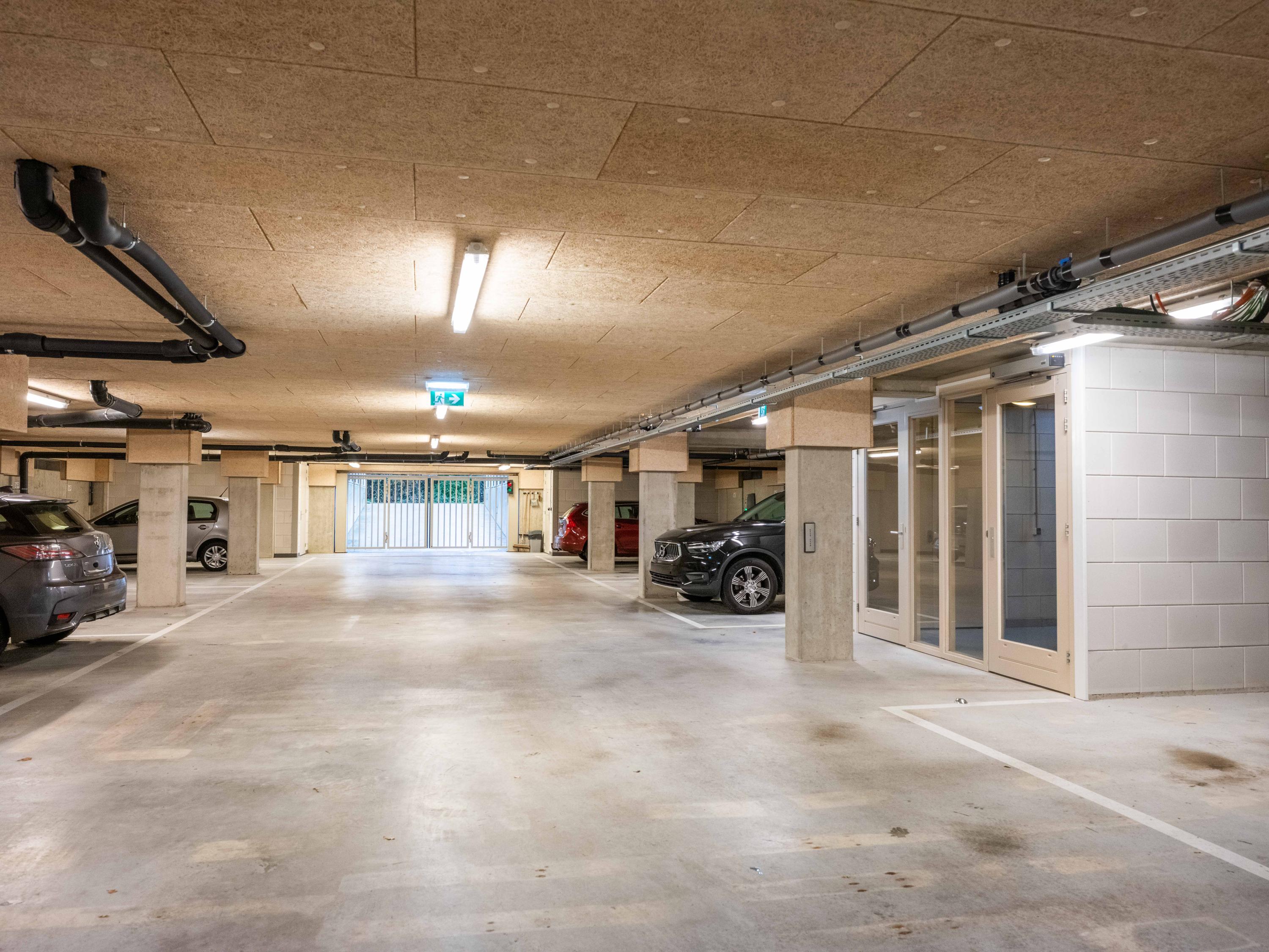 You can park your car in two private spaces in the parking garage. You will also find the storage room here, which is equipped with electricity.