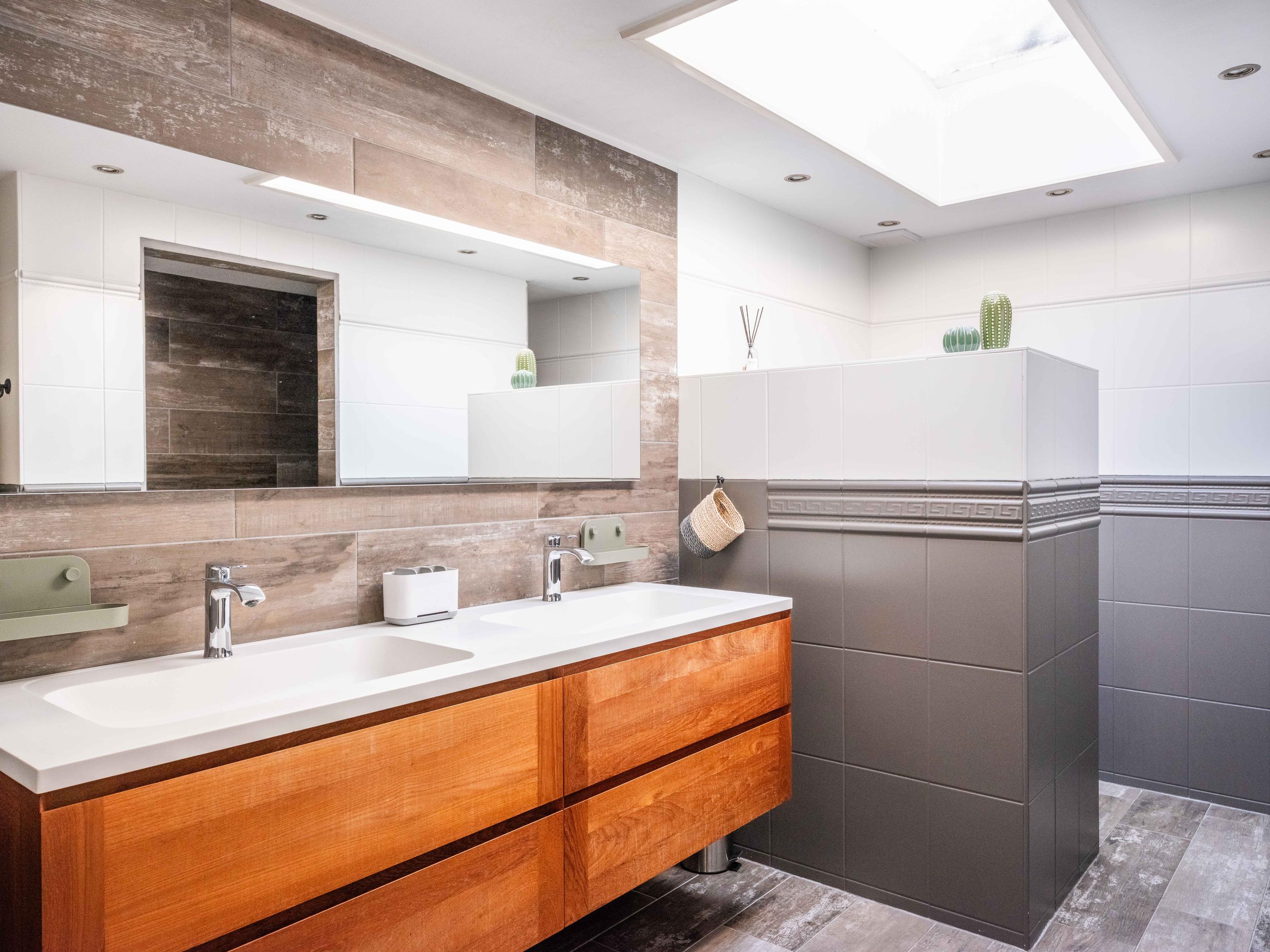 A generous landing gives access to four good bedrooms and the large bathroom. The bathroom has a double sink, walk-in shower and toilet. The very spacious master bedroom includes a wardrobe wall and a private bathroom equipped with sink, shower and toilet.