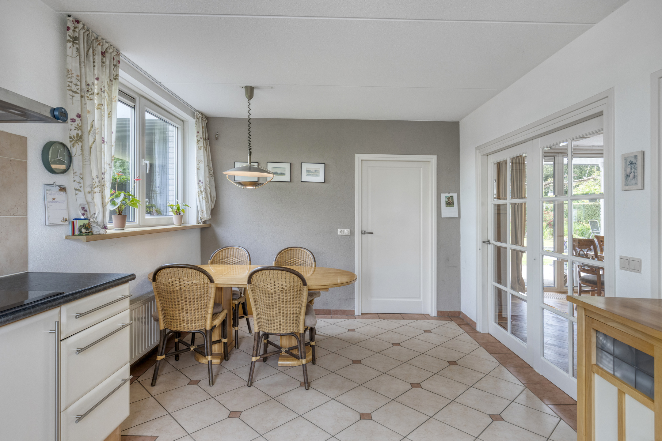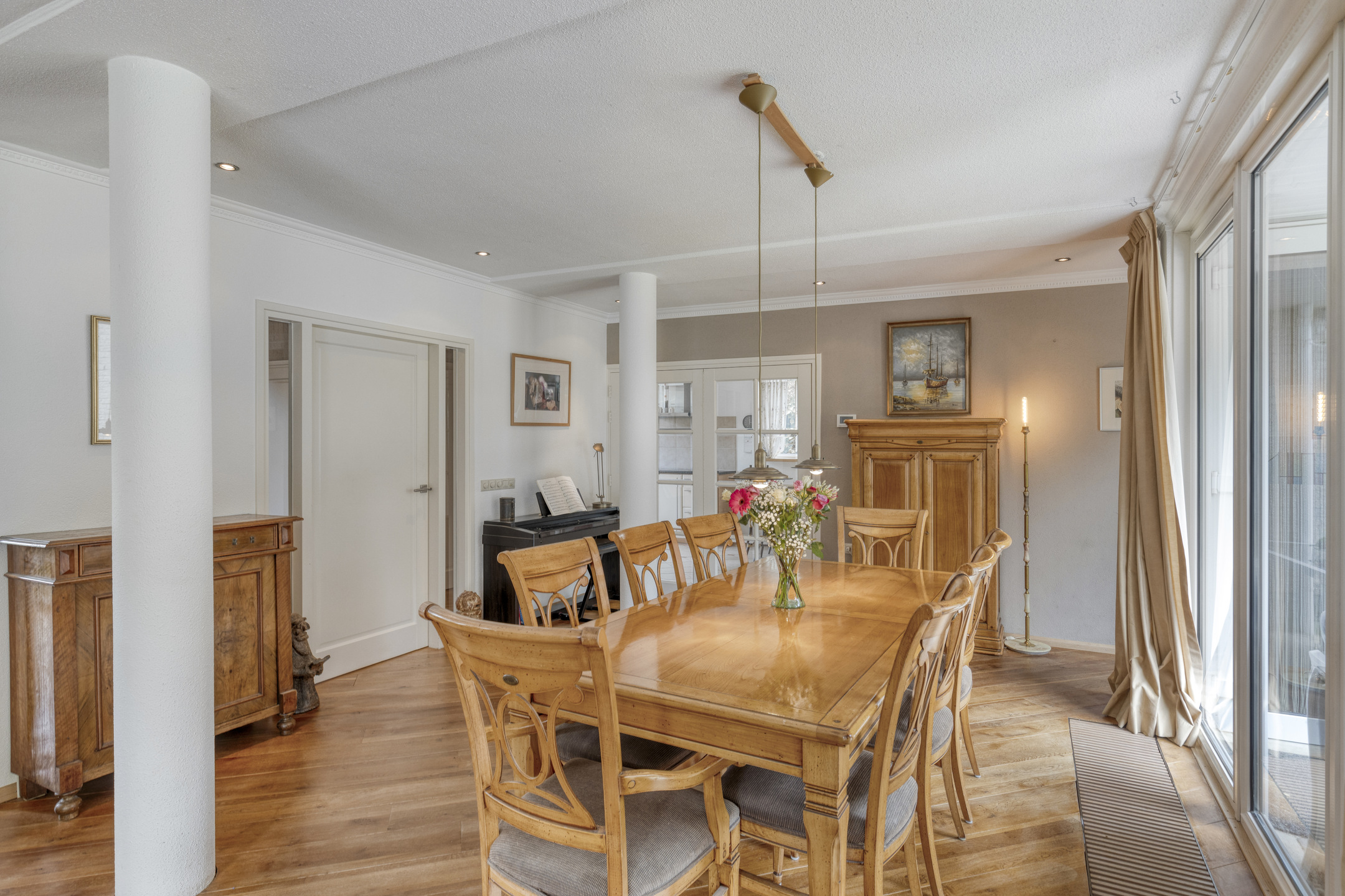 At the dining area around the corner access to the covered terrace.