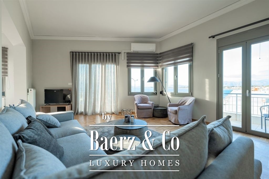 Apartment Nafplio Center presents a rare opportunity to own a 137 m² residence positioned just steps from Nafplio’s storied Old Town. This apartment stands in a league of its own, commanding direct and uninterrupted sea views over the harbor, luxury yachts, and the legendary Bourtzi Castle. From the first moment, the rhythm of harbor life and the endless blue horizon define both the interior and experience of this home.