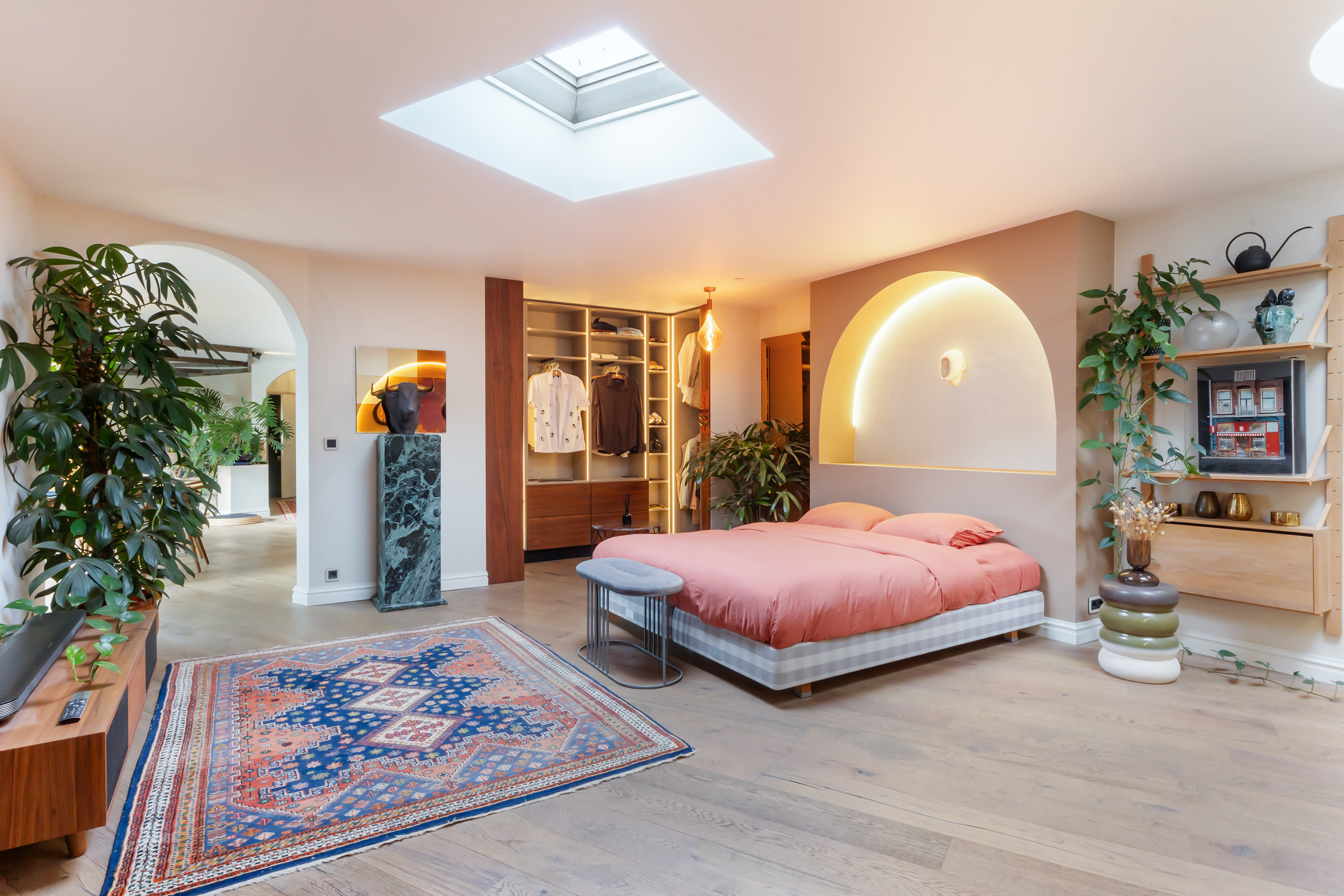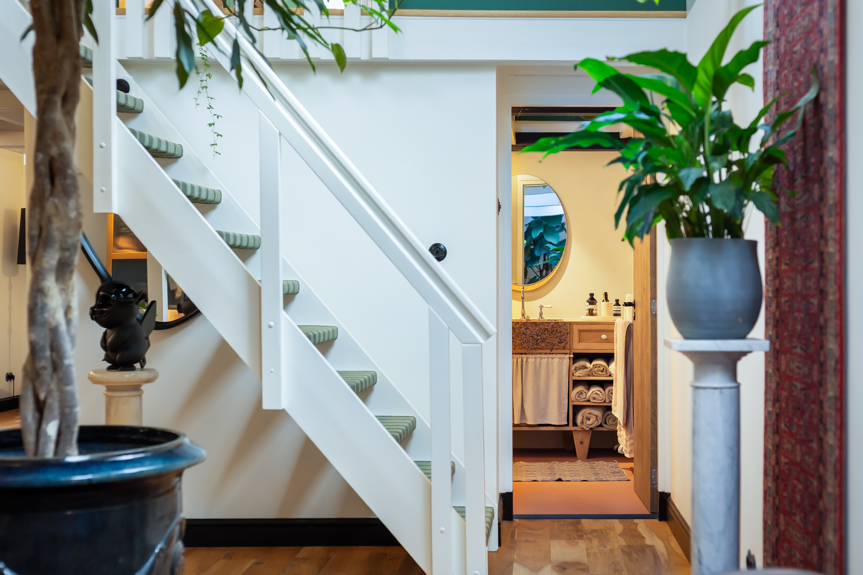 The exterior has been fully repainted, fitted with new roofing, and enclosed by a bespoke corten steel boundary with glass panels referencing the striking tulip artwork in the front garden. All windows have been upgraded with insulating glazing, and the interior has been redesigned into a hotel-chic living environment with warm tones, high-quality bespoke joinery and atmospheric lighting. The property is equipped with a comprehensive camera system and alarm installation both in and around the buildings.