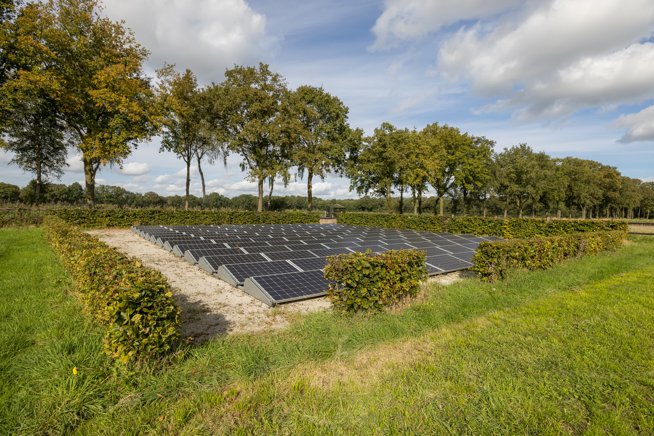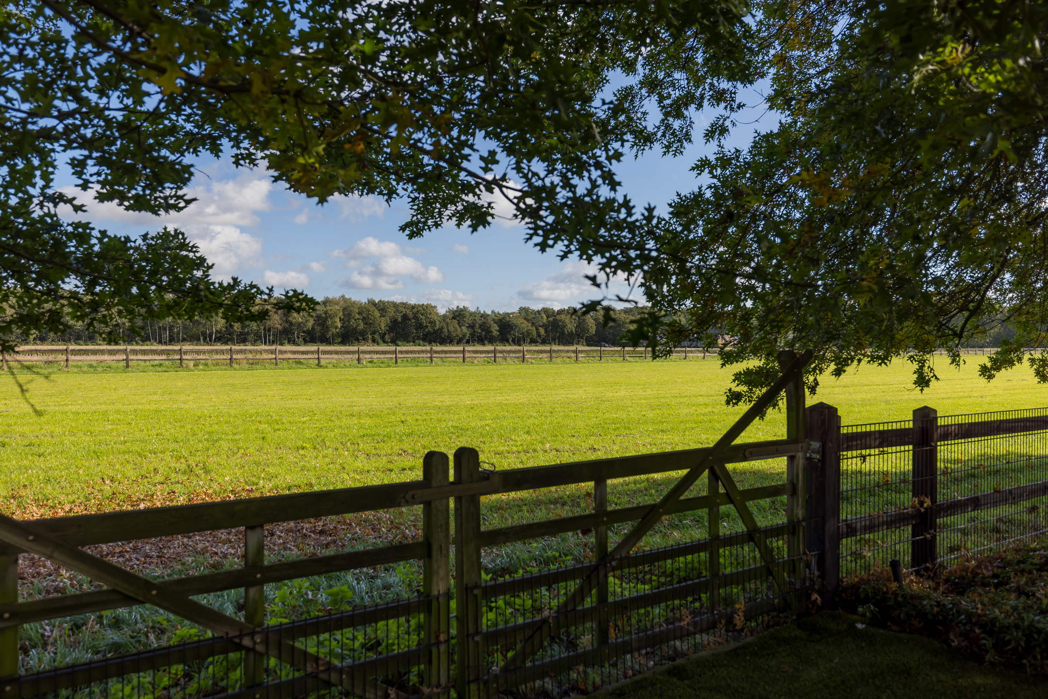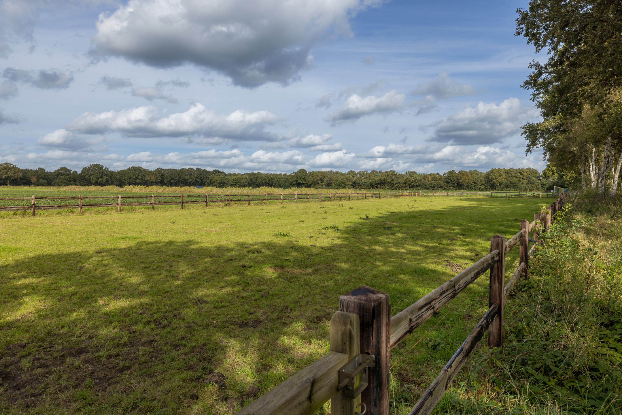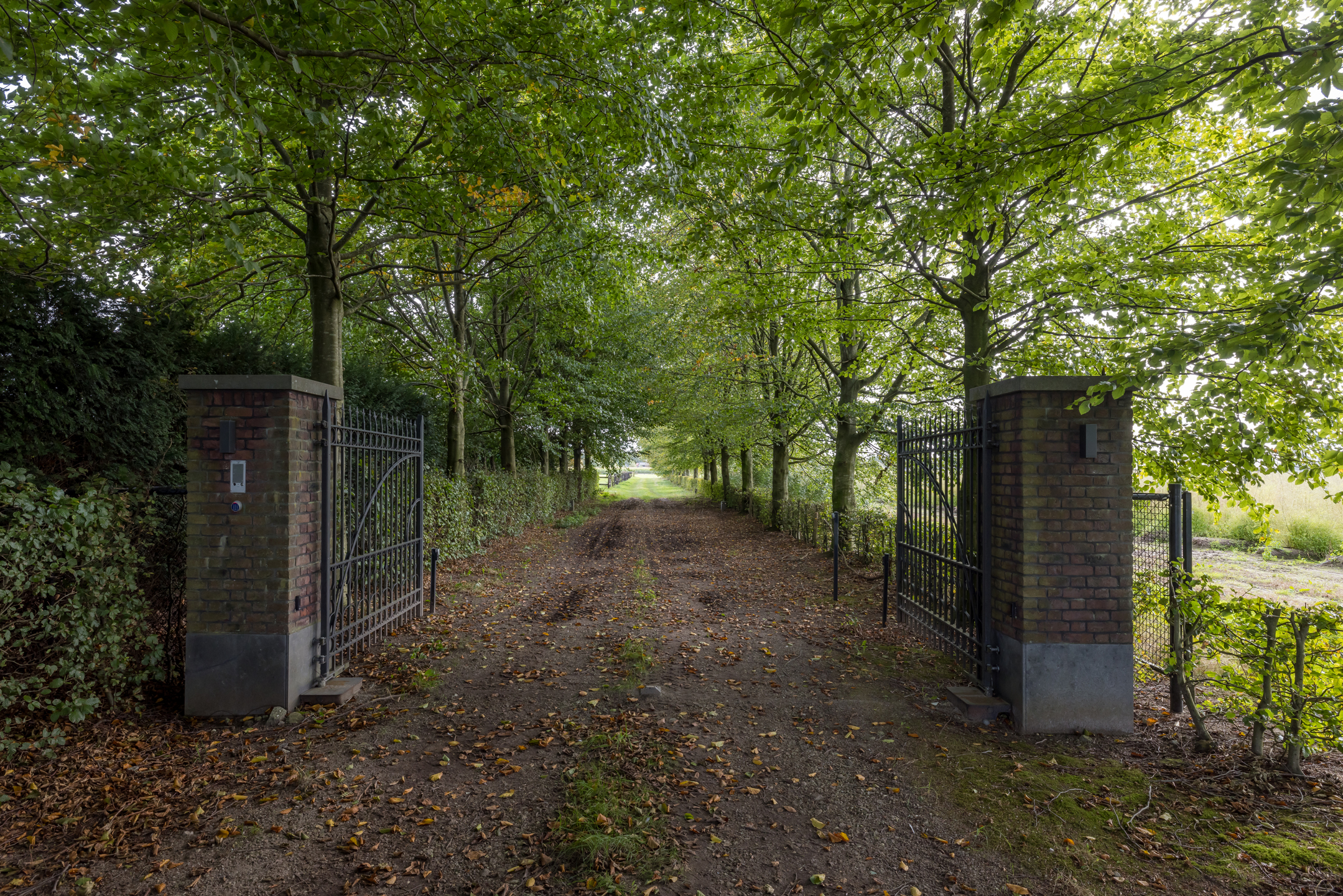 Rechts van de woning is een poort met een pad om bij het grasland te komen. Links van het kavel is een serieuze sloot (loop) waar altijd water aanwezig is, dit is gelegen aan het beekdal van het riviertje de "Leijgraaf". Aan de voorzijde van de woning, aan de overkant van de weg, ligt nog een perceel van 3.085 m² wat er ook bij hoort. Het totale terrein is 44.549 m²/ 4.45 hectare en het mag ook met alle grond verkocht worden. Wij bieden het echter nu aan met 14.550 m².
