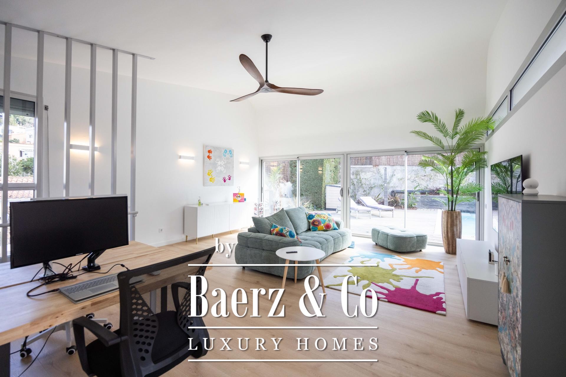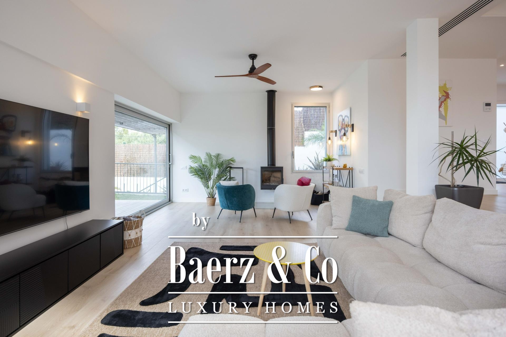 Luxury villa Esplugues de Llobregat presents a synthesis of contemporary architecture and serene Mediterranean living. This residence, renovated in 2025, offers 314 m² across three polished levels, featuring four bedrooms and four bathrooms. Unfolding within a 602 m² plot, light becomes a defining element as floor-to-ceiling windows bathe the living spaces with warmth throughout the day.
