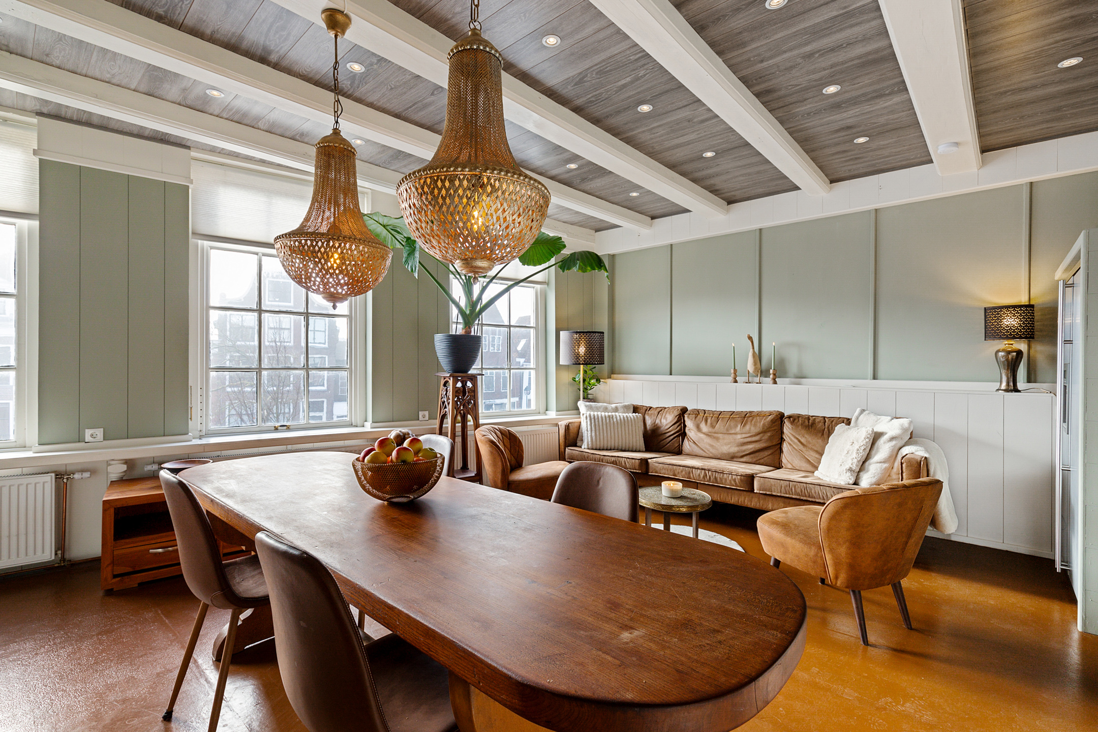 This deep canal house with two full residential floors a lodge hall, chapel, cellar and a striking attic loft beneath an exposed timber frame is an architectural icon. It tells a story reaching back to the seventeenth century a history of trade, prosperity, spirituality and culture. The ornate rocaille style entrance door, the mullioned windows, the sculpted façade stones with frieze and the carved stoop posts are tangible reminders of its rich past. The picturesque streetscape with benches in front of the historic façades forms the perfect setting for life at the Franekereind; convivial, stylish, atmospheric and within walking distance of all amenities.