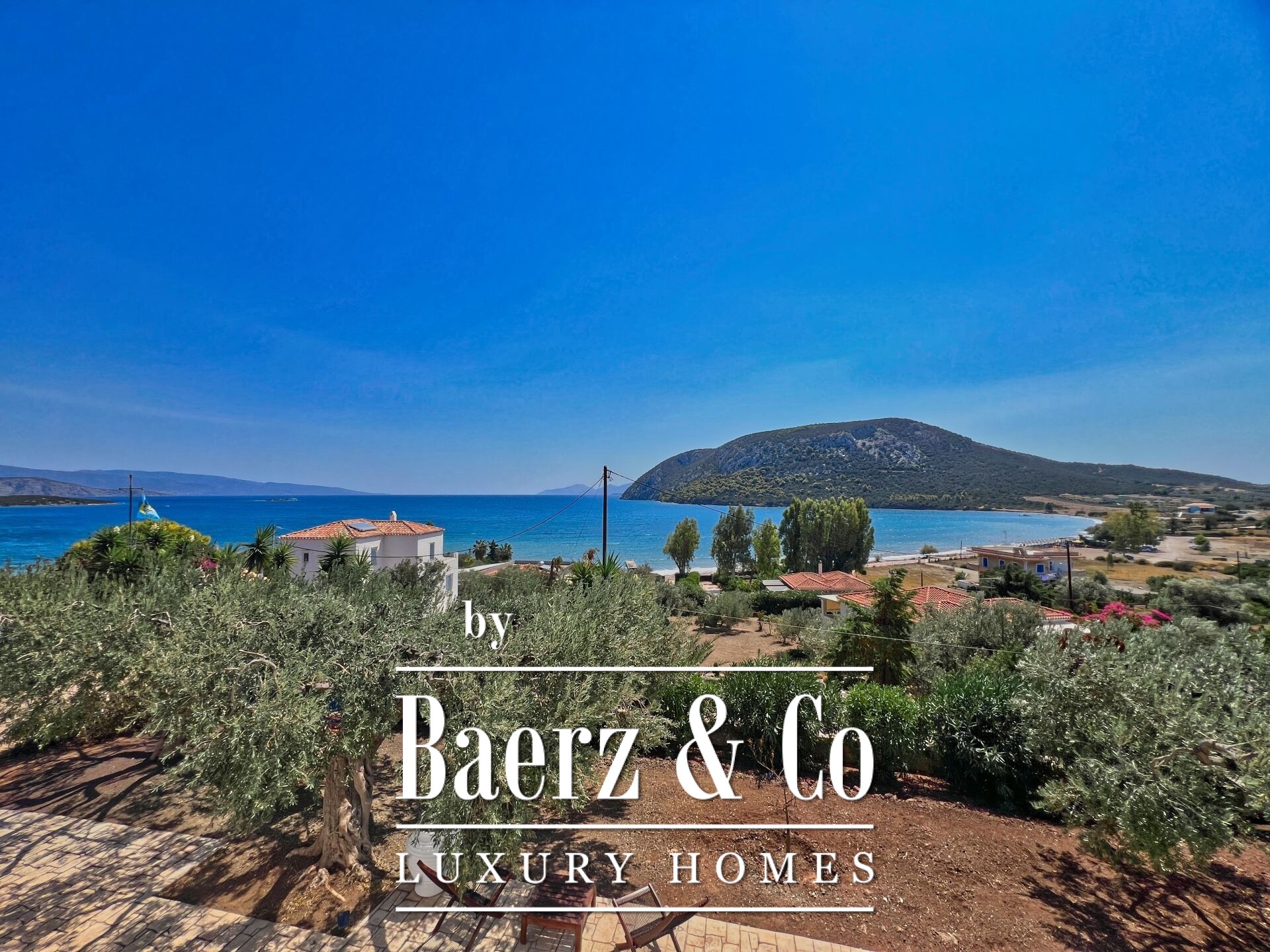 Villa Kouverta with panoramic sea views stands as a refined sanctuary on the Aegean, where Cycladic tradition and modern architecture find effortless harmony. This fully renovated 255 m² villa occupies a 2,000 m² plot just steps from the clear waters of a tranquil beach near Ermioni. The interplay of white facades, clean lines, and generous openings allows natural light to infuse every space, framing quiet views across olive groves to the glittering sea.
