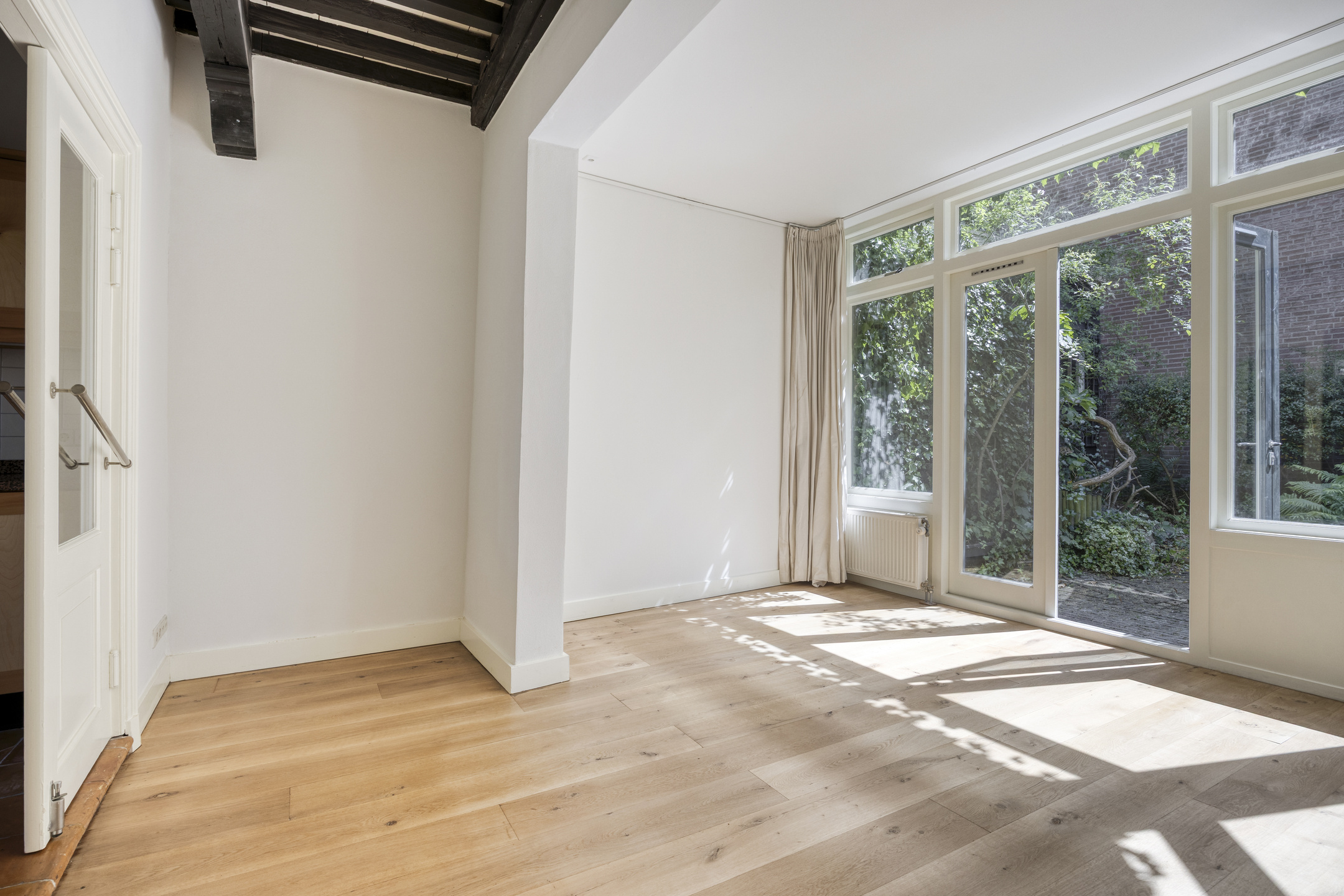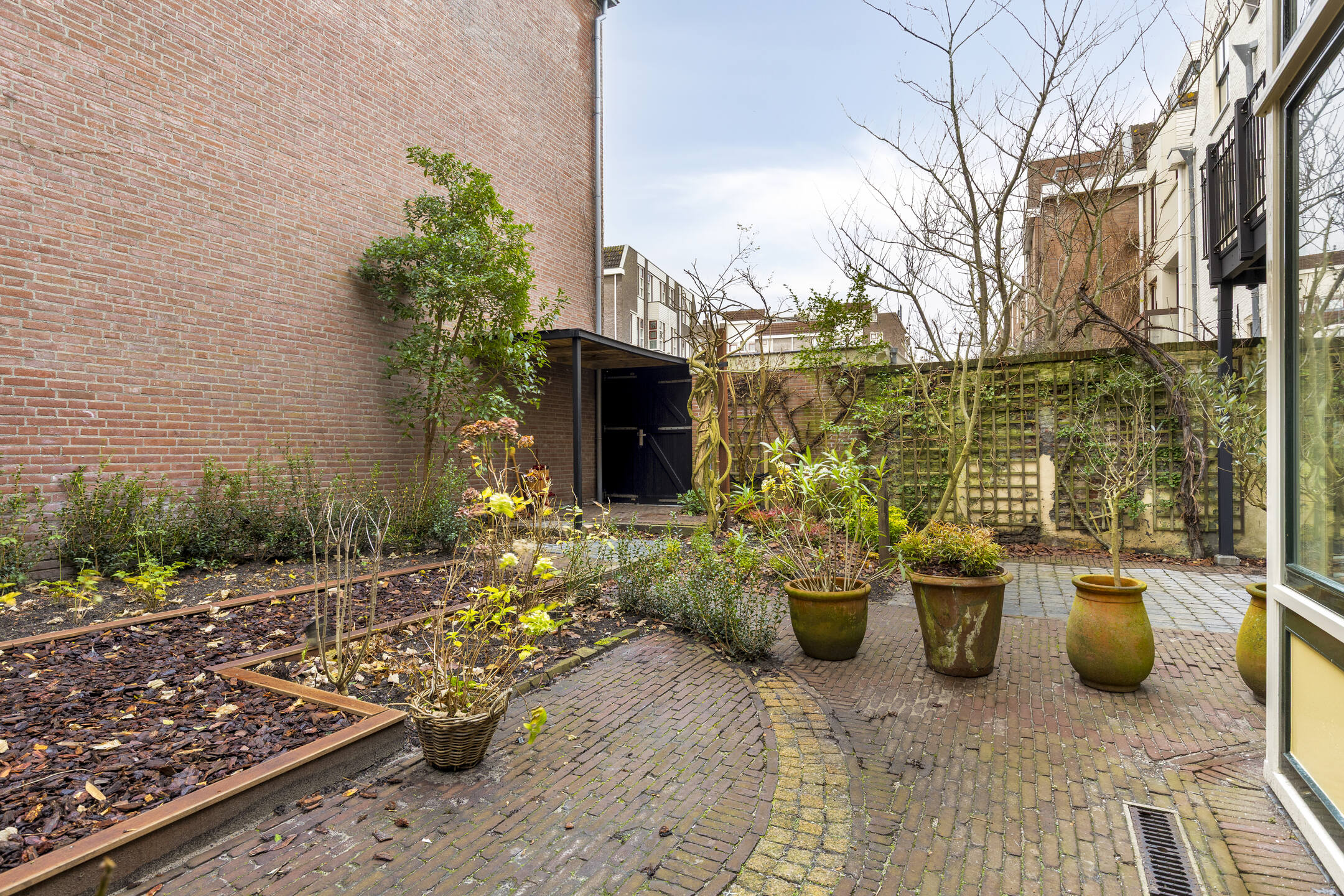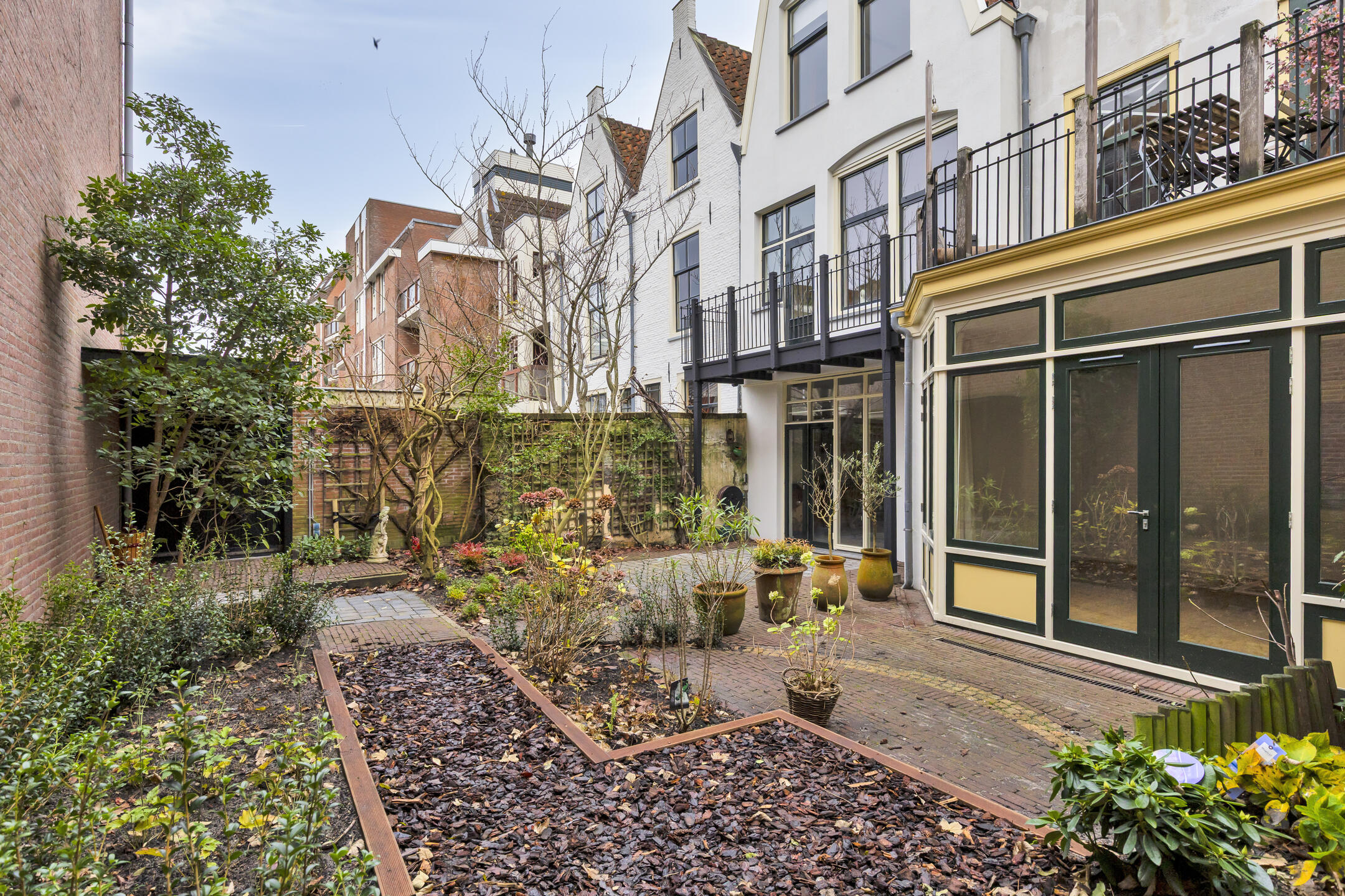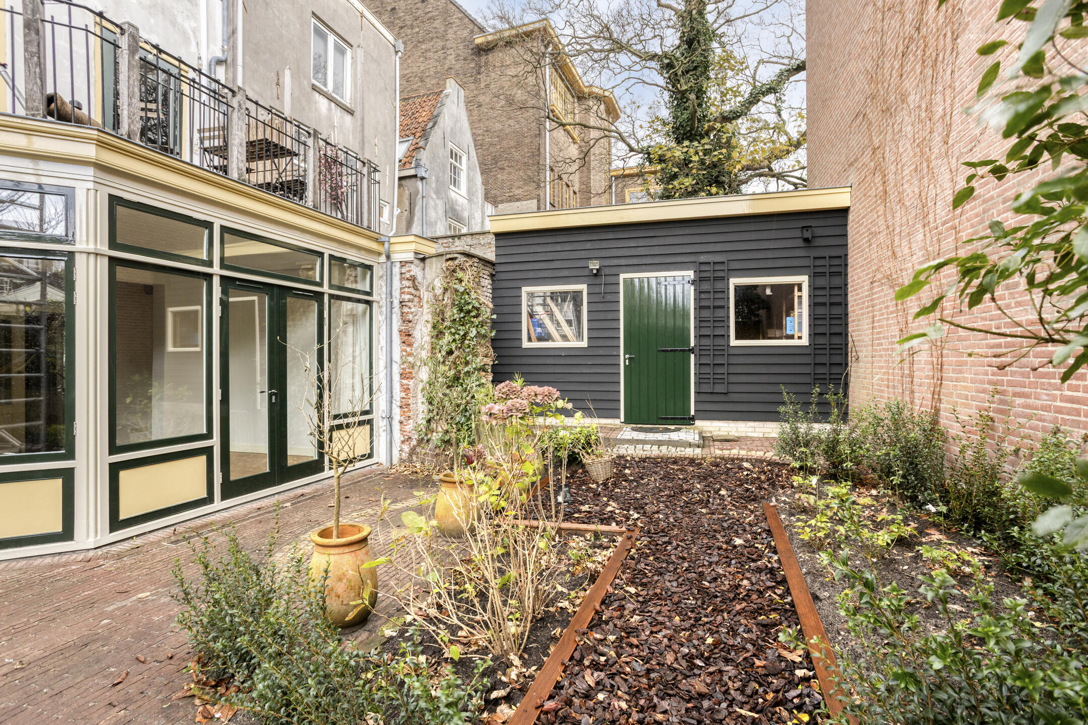 Een buitenkans in de binnenstad is de uitzonderlijk brede, beschutte achtertuin op het zuiden: circa zeven meter diep en maar liefst veertien meter breed. Een ware oase midden in de stad. Perfect voor wie droomt van groen, privacy én ruimte. De tuin beschikt over een twee bergingen en achterom aan twee zijden, een combinatie die maar zelden te vinden is binnen de singels. Binnen zorgen strak gestuukte wanden, oude steentjes en eikenhouten vloerdelen voor een stijlvolle en warme afwerking die past bij de historische ambiance.