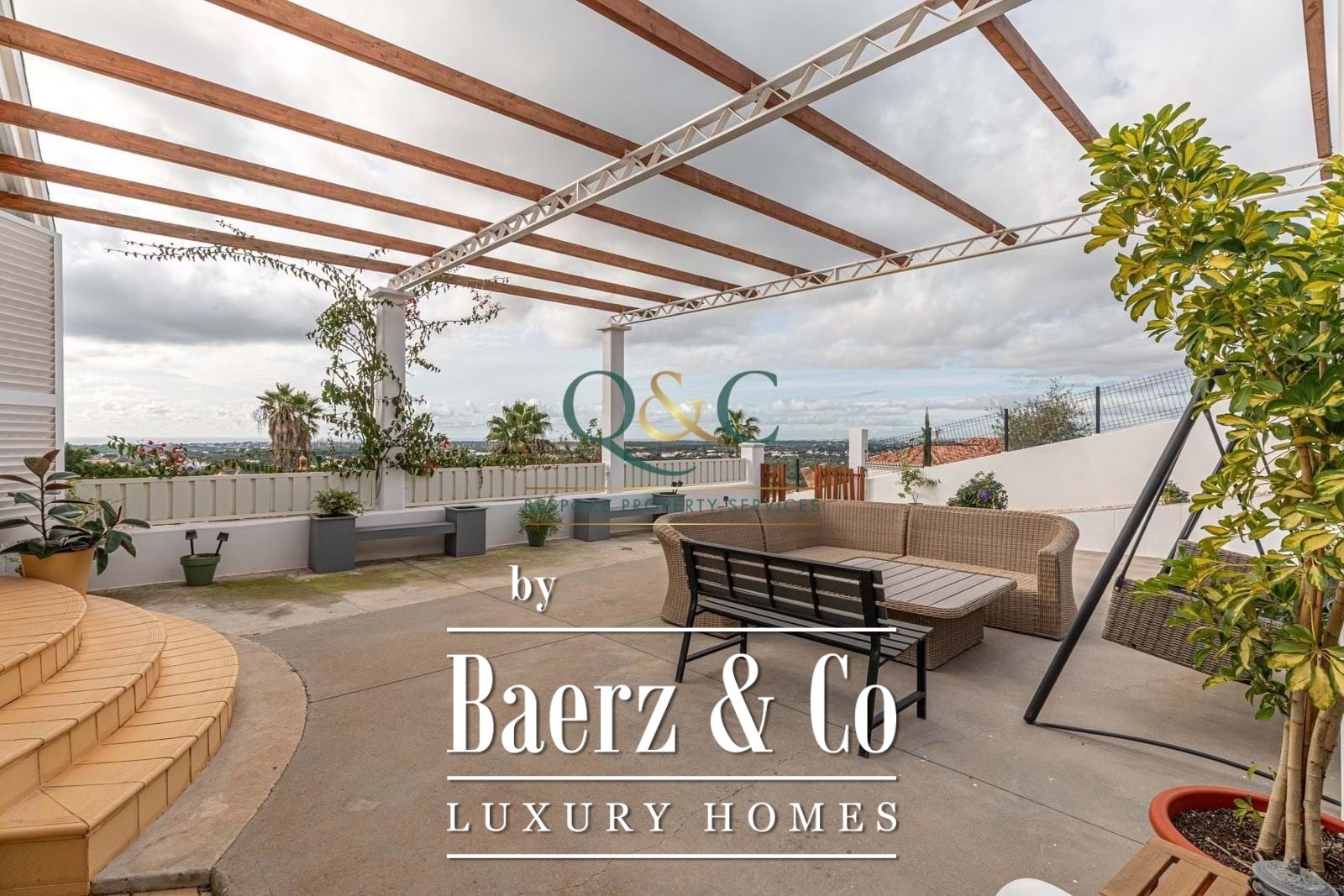 Sitting on 900 m² of the main plot, the property also includes an adjacent building plot of approximately 600 m², offering future opportunities from guesthouse construction to expanded gardens. Features such as air conditioning, solar hot water, security, fireplace, and built-in garage further support comfort. With panoramic sea and countryside views and a versatile layout, this detached villa Loulé is suited for family life, multi-generational living, or as a luxury villa for sale in Loulé appealing to discerning investors.