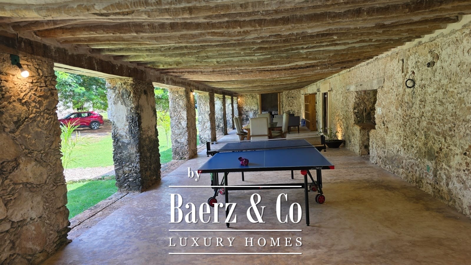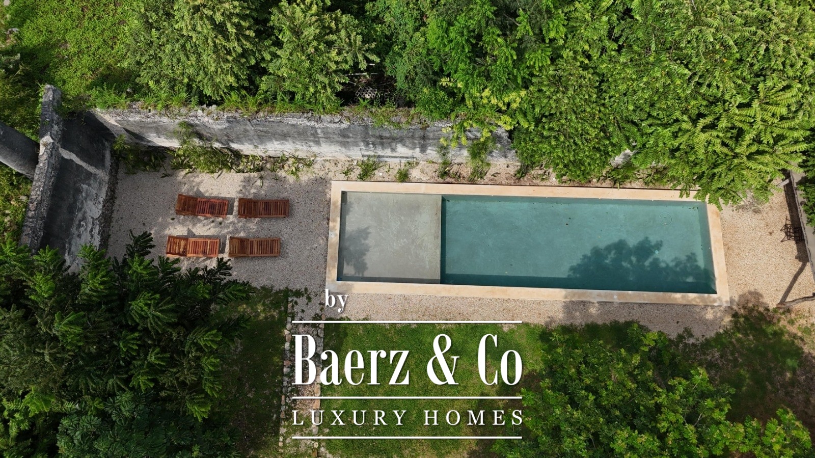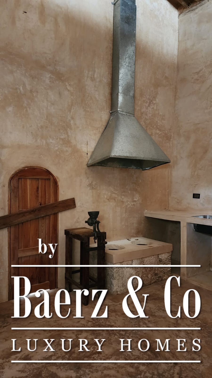 The architectural spirit is preserved with precise restoration techniques, honoring original stonework, chukum finishes, and hand-hewn wood—completely absent of modern steel or block. The 846 m² main house comprises six bedrooms, each with a private bathroom, and is anchored by a traditional kitchen with a comal and stone mill. Expansive dining and lounge areas open onto colonial corridors and terraces, while the swimming pool and pond look out over jungle canopy and curated orchard.