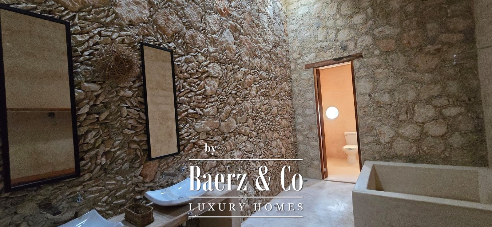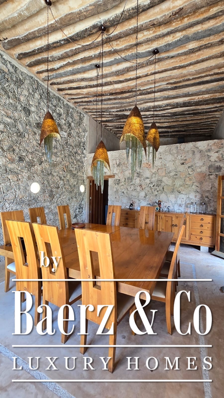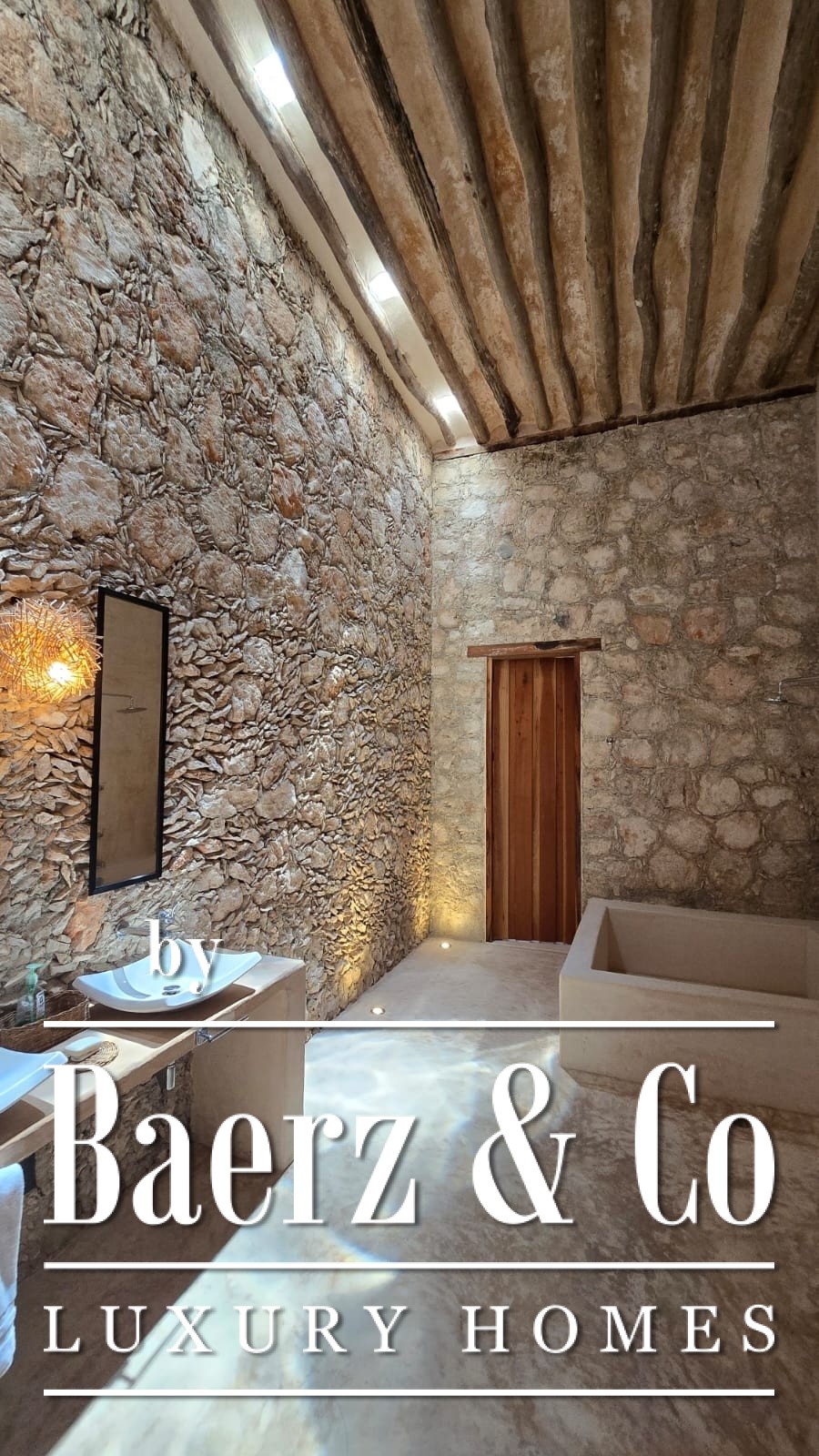 The architectural spirit is preserved with precise restoration techniques, honoring original stonework, chukum finishes, and hand-hewn wood—completely absent of modern steel or block. The 846 m² main house comprises six bedrooms, each with a private bathroom, and is anchored by a traditional kitchen with a comal and stone mill. Expansive dining and lounge areas open onto colonial corridors and terraces, while the swimming pool and pond look out over jungle canopy and curated orchard.