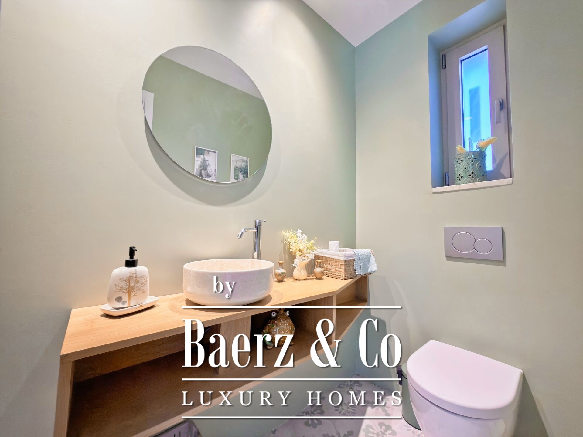 Outdoors, the restrained elegance of the courtyard is anchored by a 50 m² swimming pool and an expansive BBQ area beneath oak pergolas. With unobstructed mountain, sea, and nature views, the boundaries between inside and out dissolve effortlessly. A 47 m² basement accommodates parking and storage, while a photovoltaic system enhances self-sufficiency. This villa possesses the serenity of a country estate, yet delivers the comfort of a thoughtfully crafted home, tailored for all seasons.