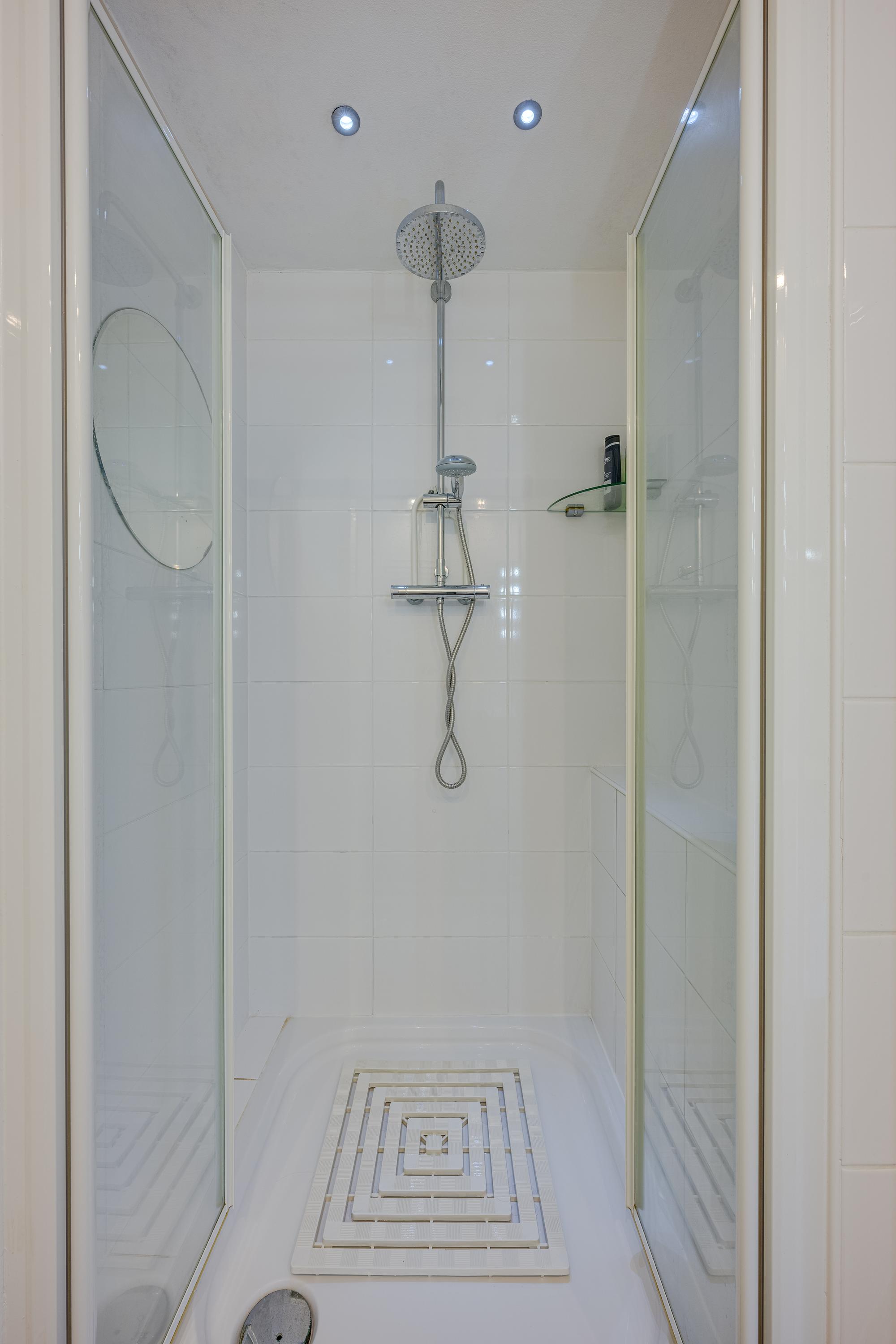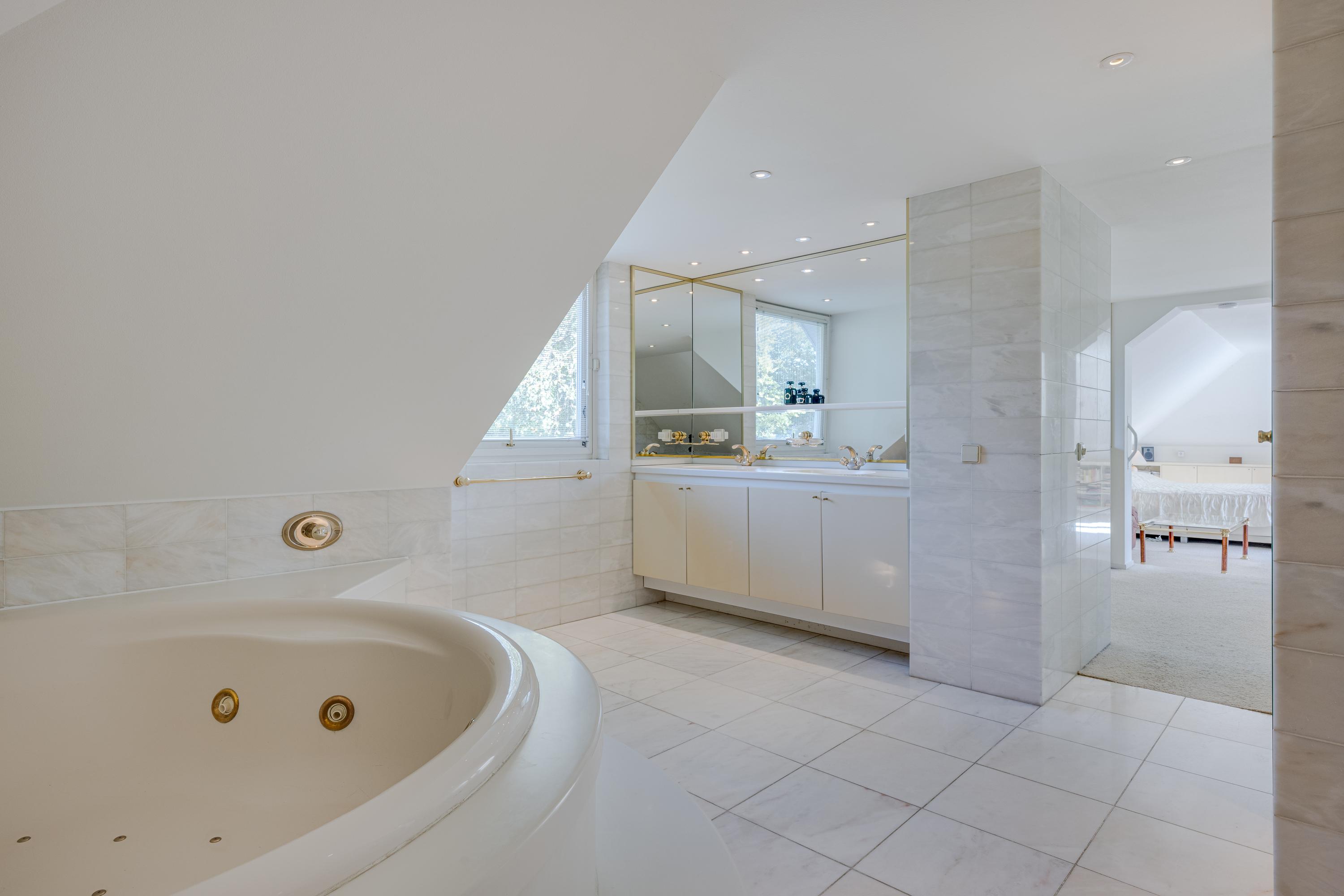 First floor: The landing gives access to 2 bedrooms with a shared bathroom, each with access to the roof terrace. On the other side of the landing is the very spacious master bedroom with fitted wardrobes and a spacious en-suite bathroom. The first part is a walk-in dressing room; in the second part, you will find the bath/jacuzzi, a double washbasin, toilet, and bidet as well as access to the additional dressing room/solarium. The master bedroom also has access to the large roof terrace.
