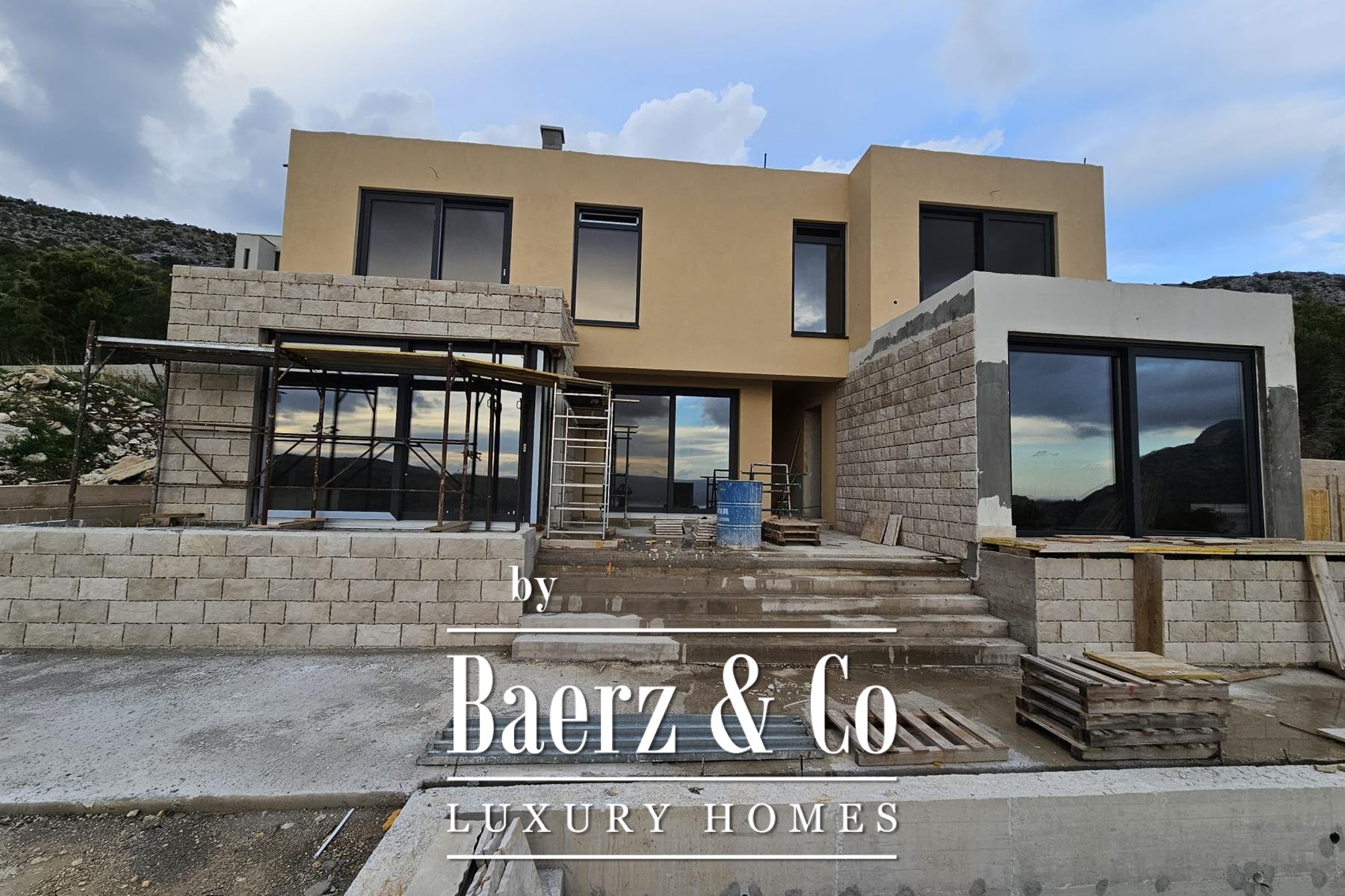 Modern villa Omiš stands discreetly atop a secluded cul-de-sac, occupying a 775 m² plot that commands sweeping views above the town and the Brač Channel. The villa’s 195 m² are artfully composed over two levels, with thoughtful placement ensuring privacy and natural light throughout.