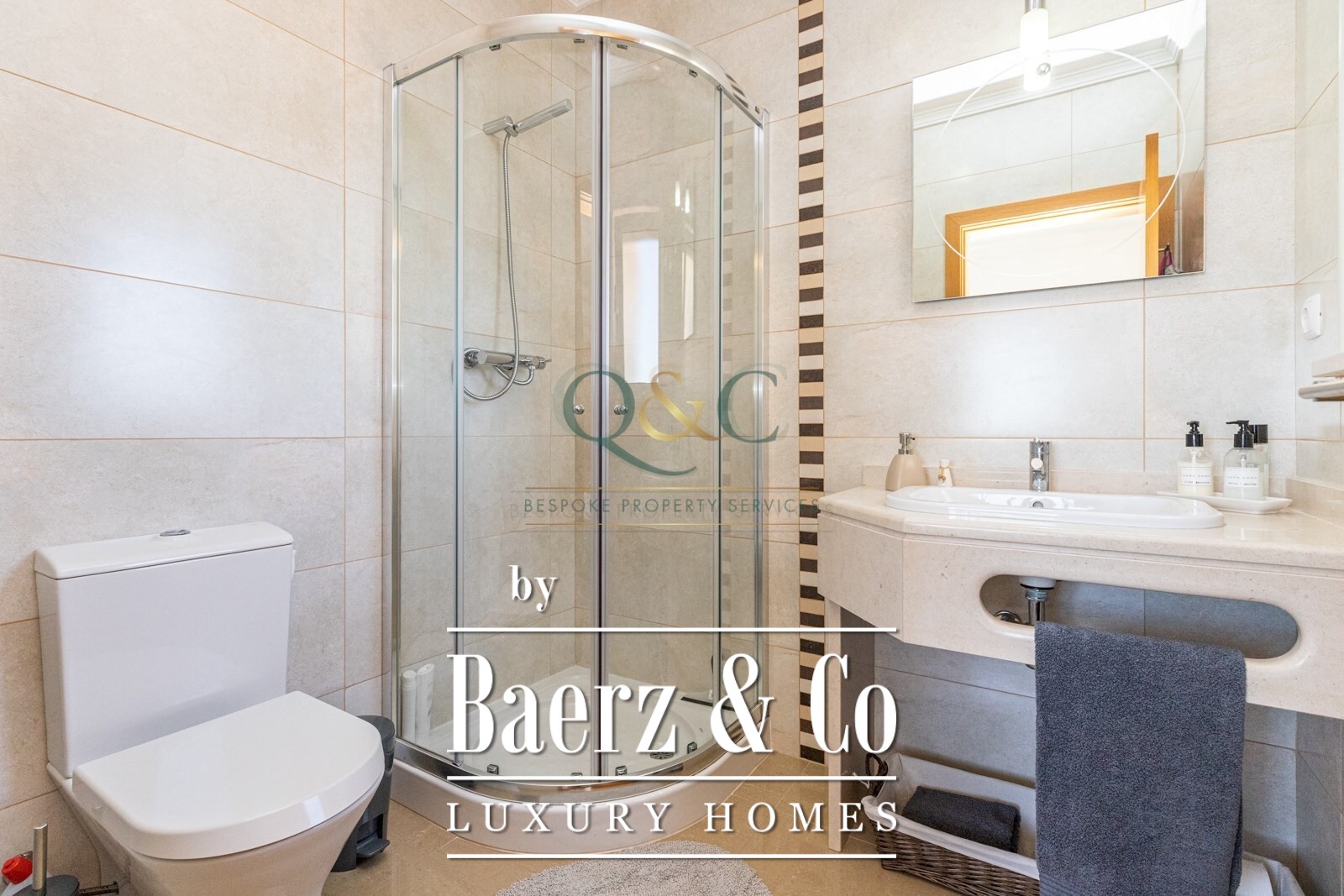 A walled, 400 m² plot with private gardens and mature plantings ensures privacy and a sense of retreat, yet the village’s charms are within walking distance. Practical features include air conditioning, double glazing, fitted wardrobes, and main drainage. The proximity to Faro Airport, under 20 minutes away, and the Golden Triangle’s coastline, just 15 minutes, offer an effortless balance of seclusion and accessibility. This luxury villa for sale in Santa Bárbara de Nexe invites a quietly refined Algarve life.