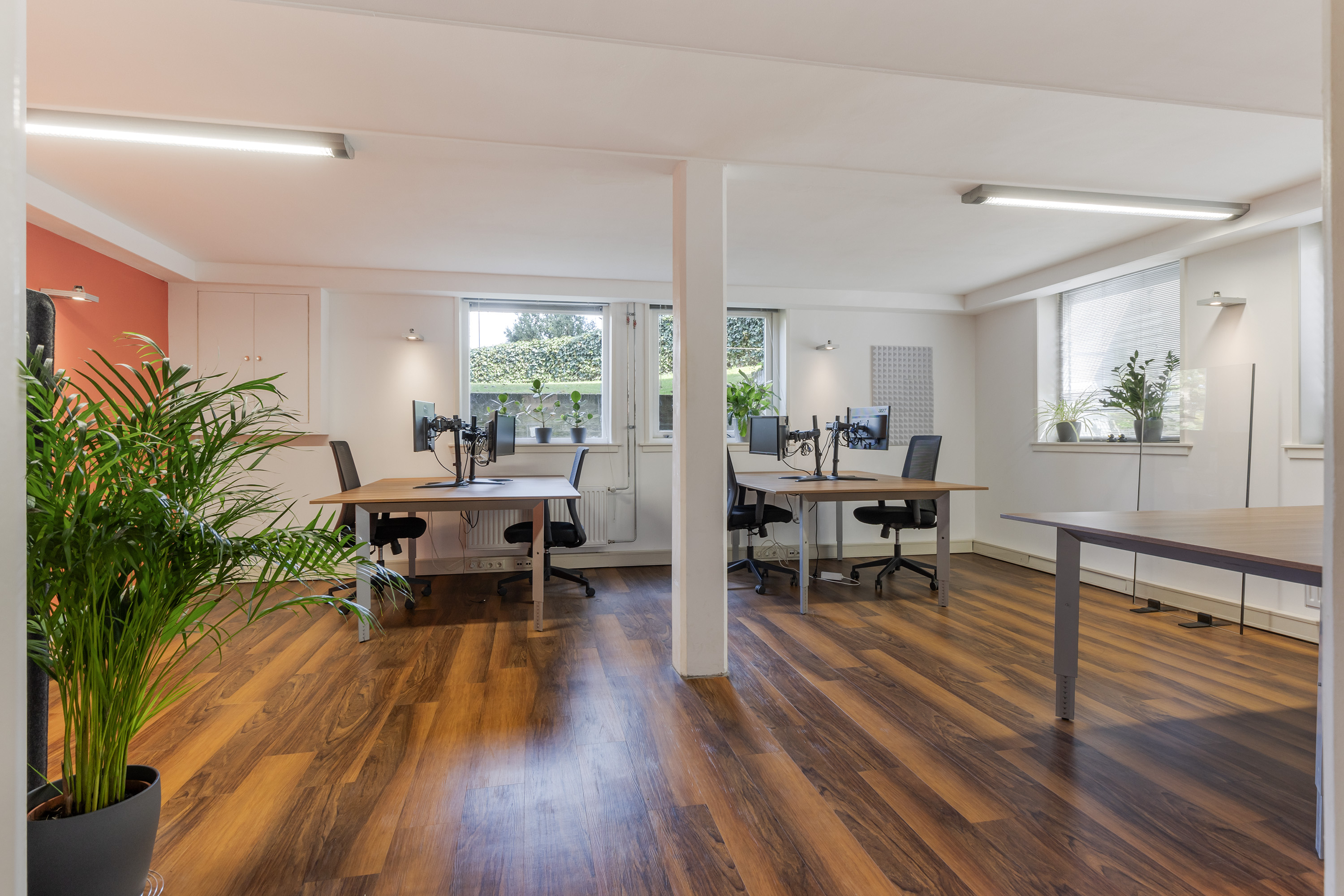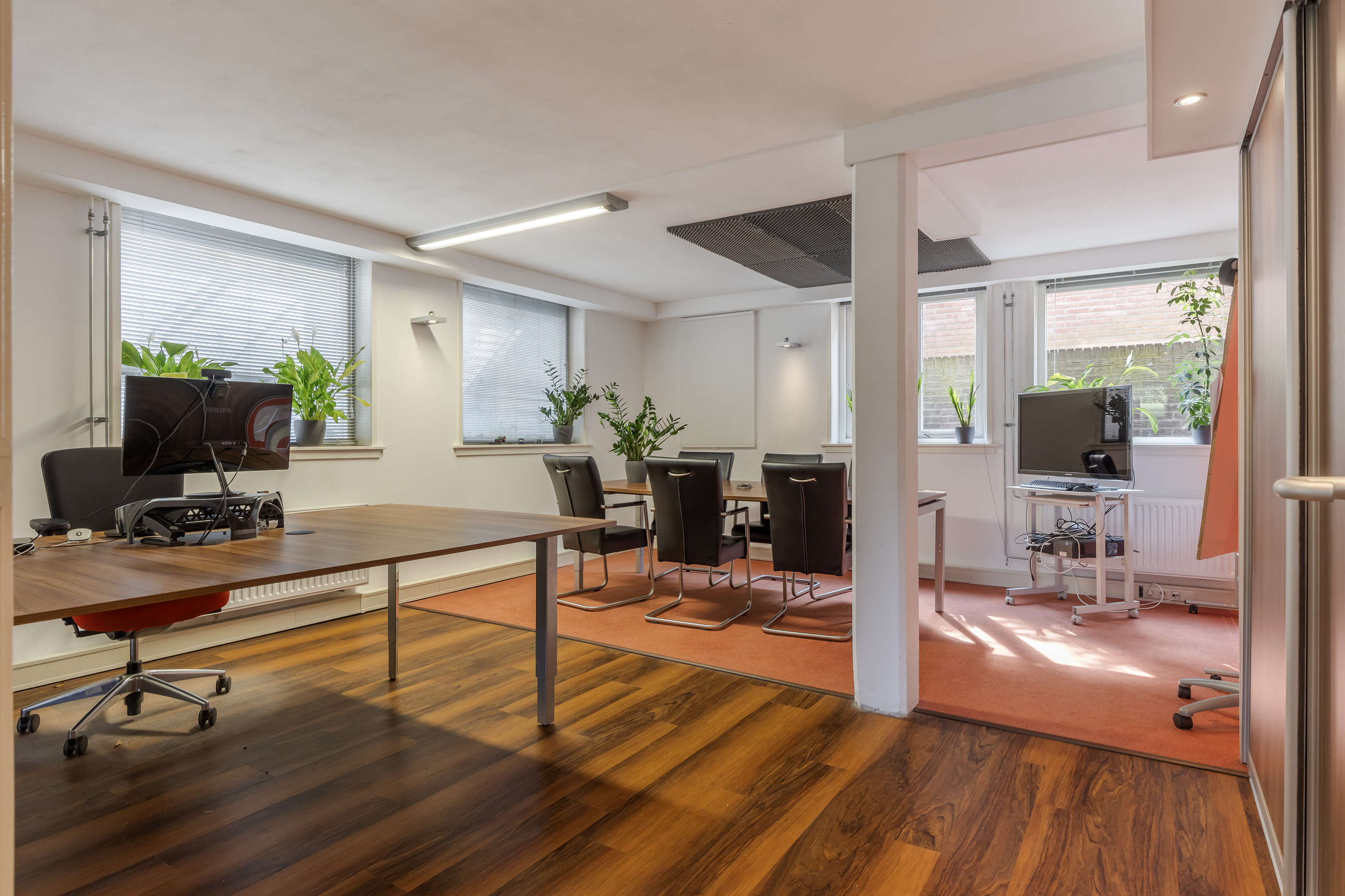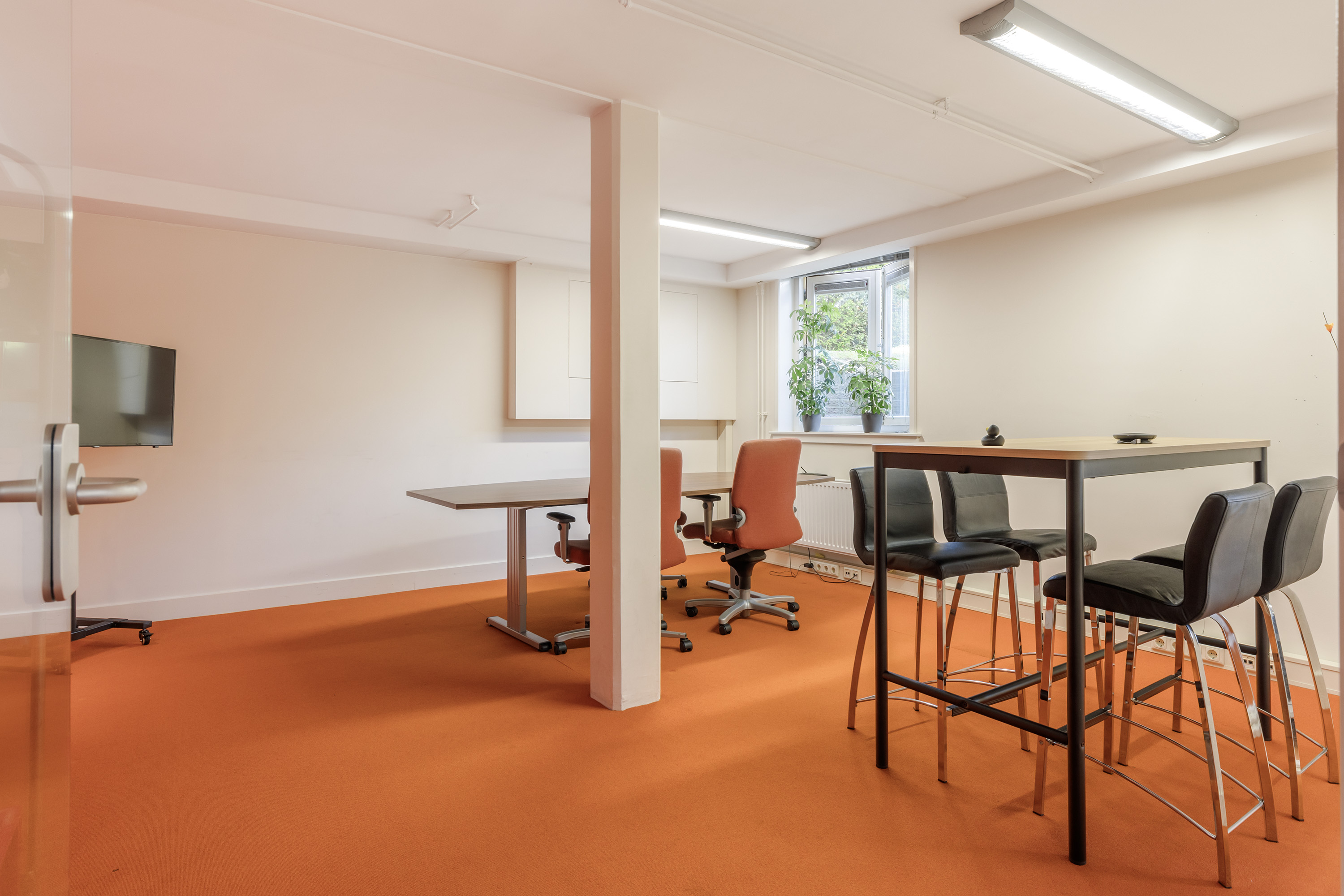 The basement is one of the most versatile parts of the house. With its own entrance, this space can be used completely independently, for example as an office, practice room or guest room. The layout comprises a reception hall with kitchen layout, toilet area and several spacious offices currently in use as work and meeting rooms. The hard-glazed walls and doors, air conditioning and modern finishes make this space attractive for business purposes or as an extension of living space.