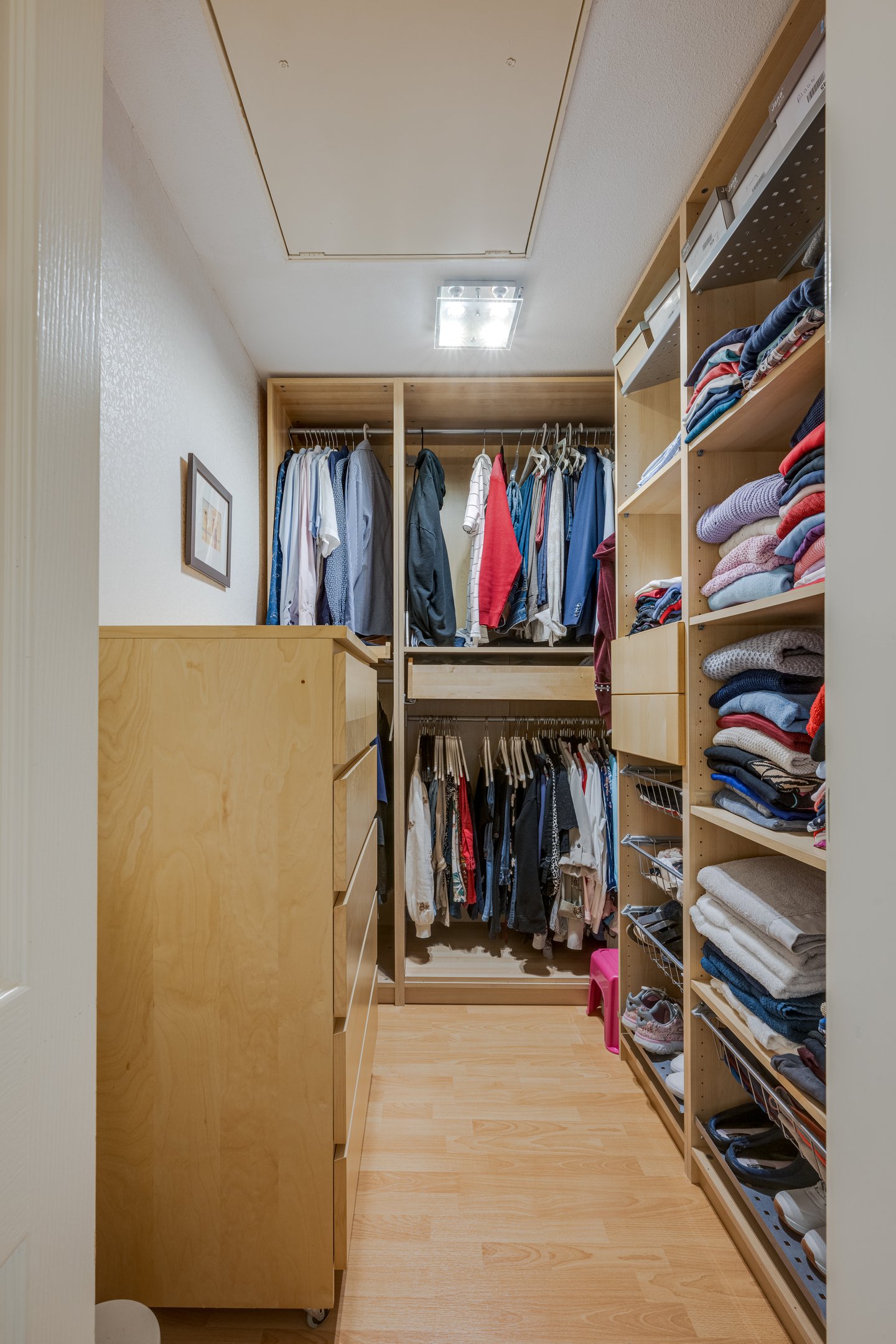 Via a loft ladder you reach the spacious storage loft, perfect for storing seasonal items. Here is also the central heating system. There is enough space in the attic to create one or two extra rooms.
