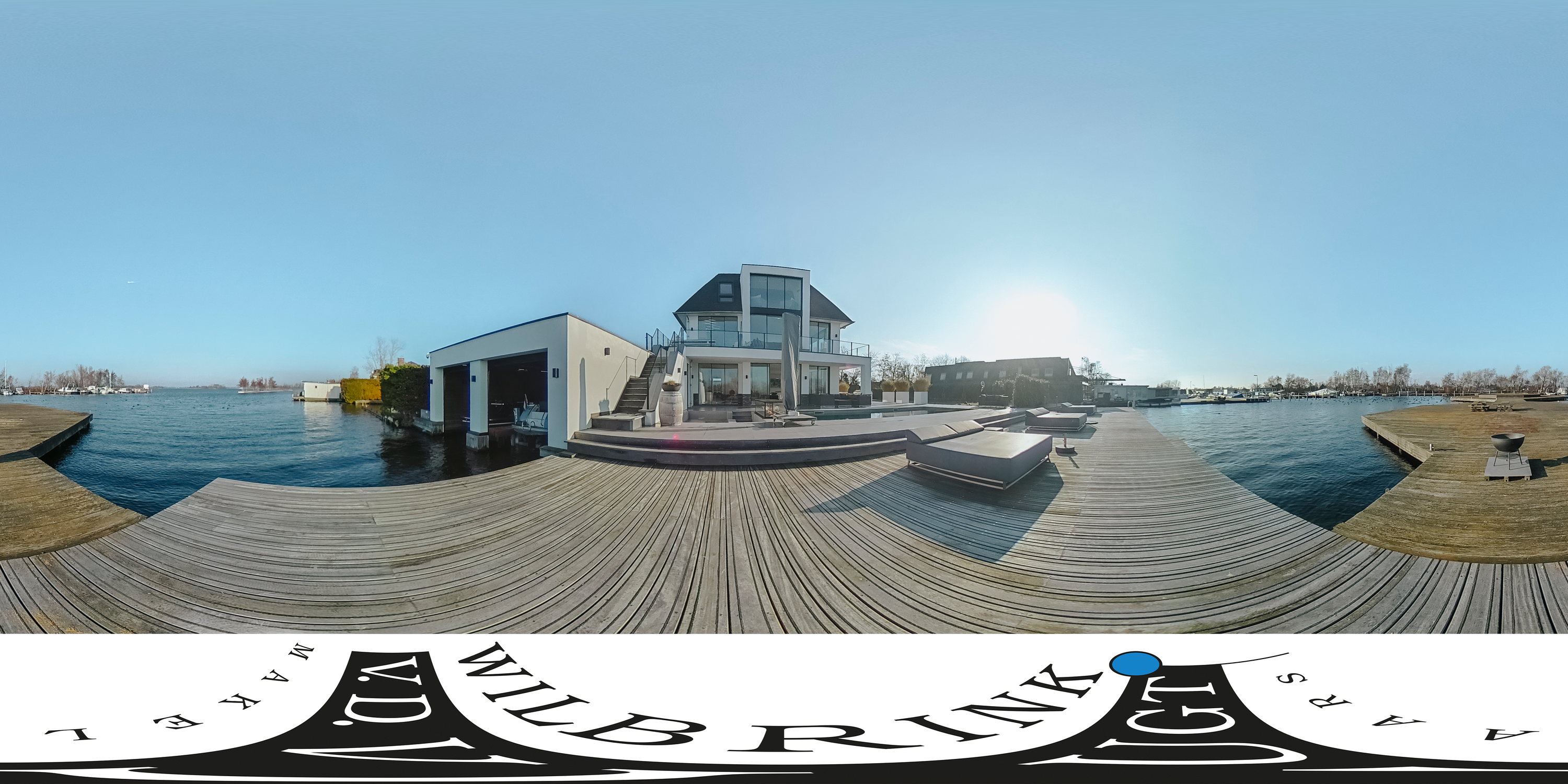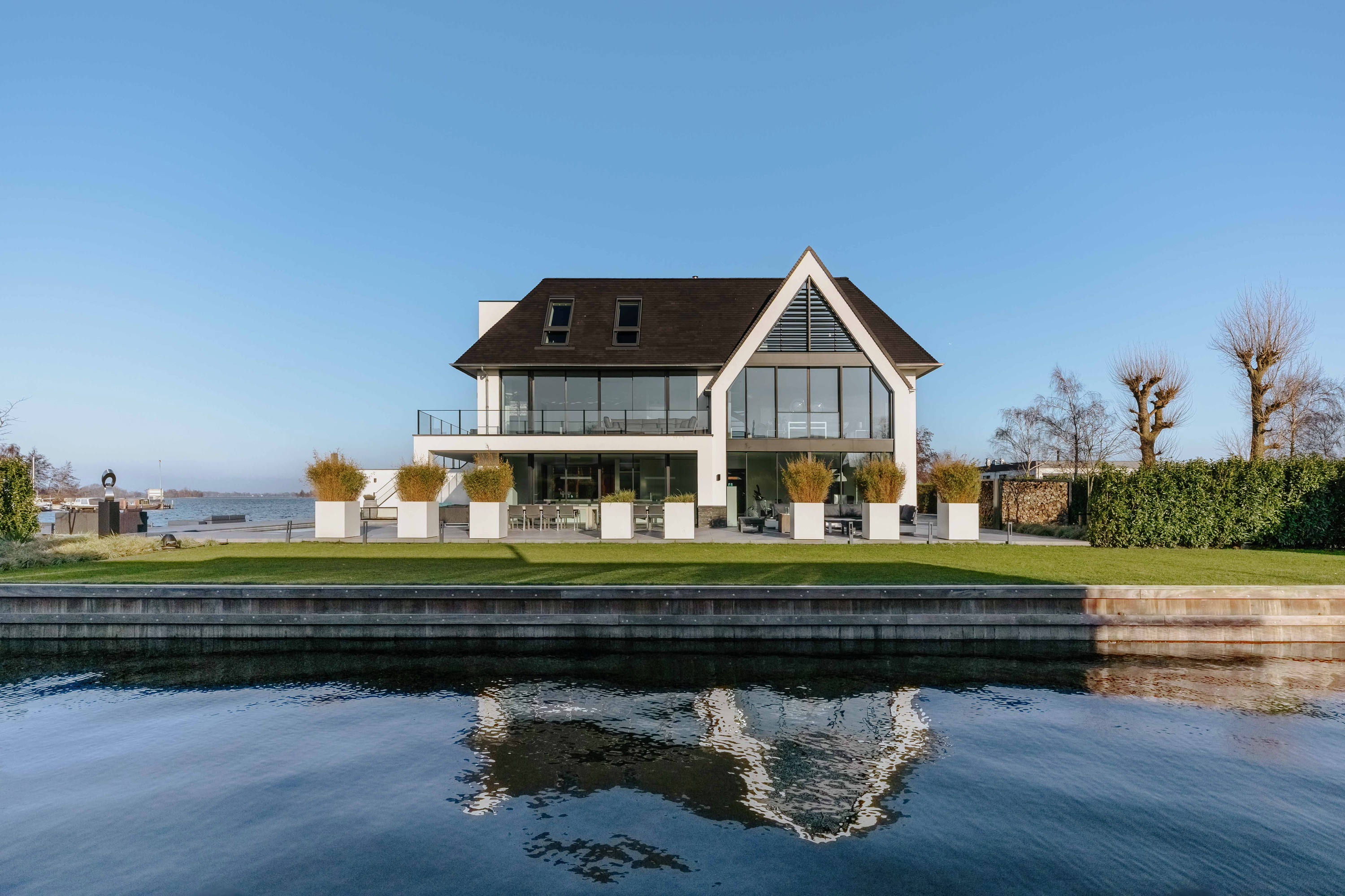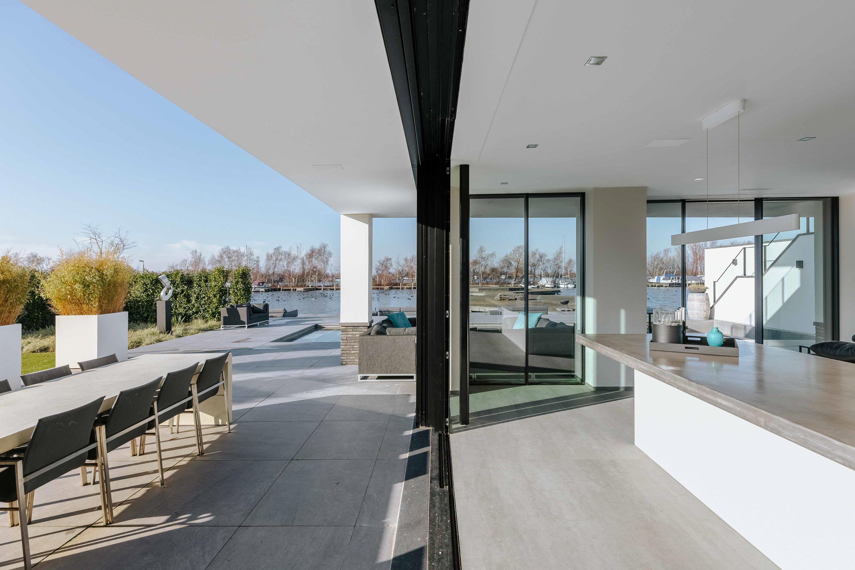 This recently built, modern villa, designed by Van Egmond Architects, is located directly on the Vinkeveense Plassen. With its own boathouse, swimming pool, jetty, and phenomenal unobstructed views across the water towards Amsterdam, this is a dream home offering a high level of living comfort.