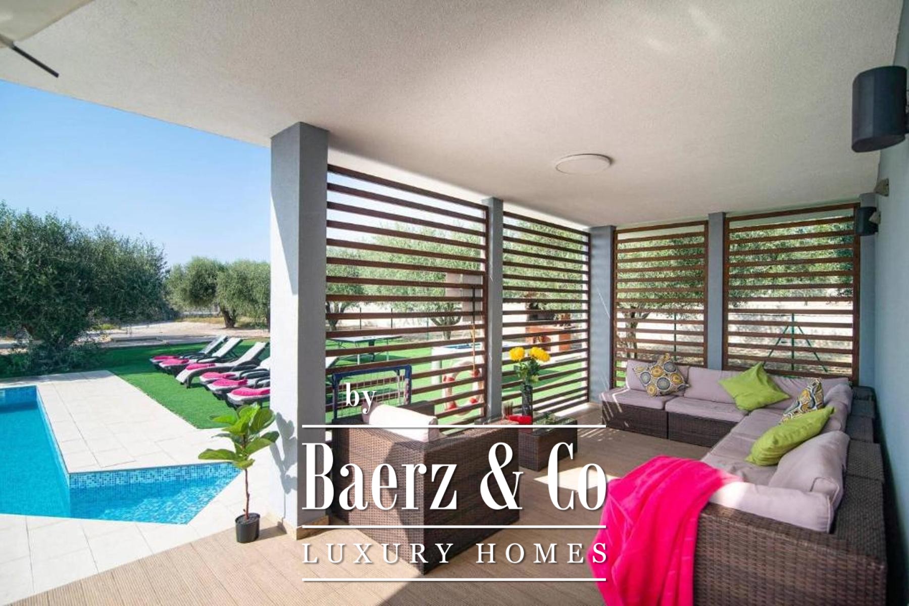 The architecture emphasizes both function and experience. Three spacious bedrooms and a seamless open-concept living area draw natural light throughout, while underfloor heating in every room provides year-round comfort. Dual access leads from the kitchen, dining, and living spaces onto a terrace overlooking a private heated pool, sun lounge, and areas designed for quiet enjoyment or lively gatherings. The Energy class A plus rating underscores the commitment to quality construction and lasting efficiency.