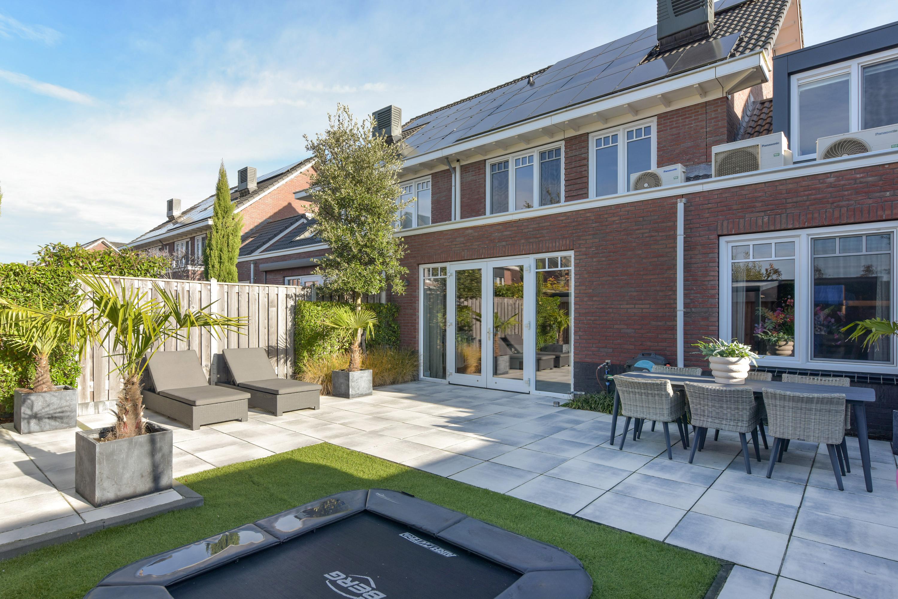 + West-facing garden with veranda, built-in trampoline, multiple terraces, and full irrigation system.