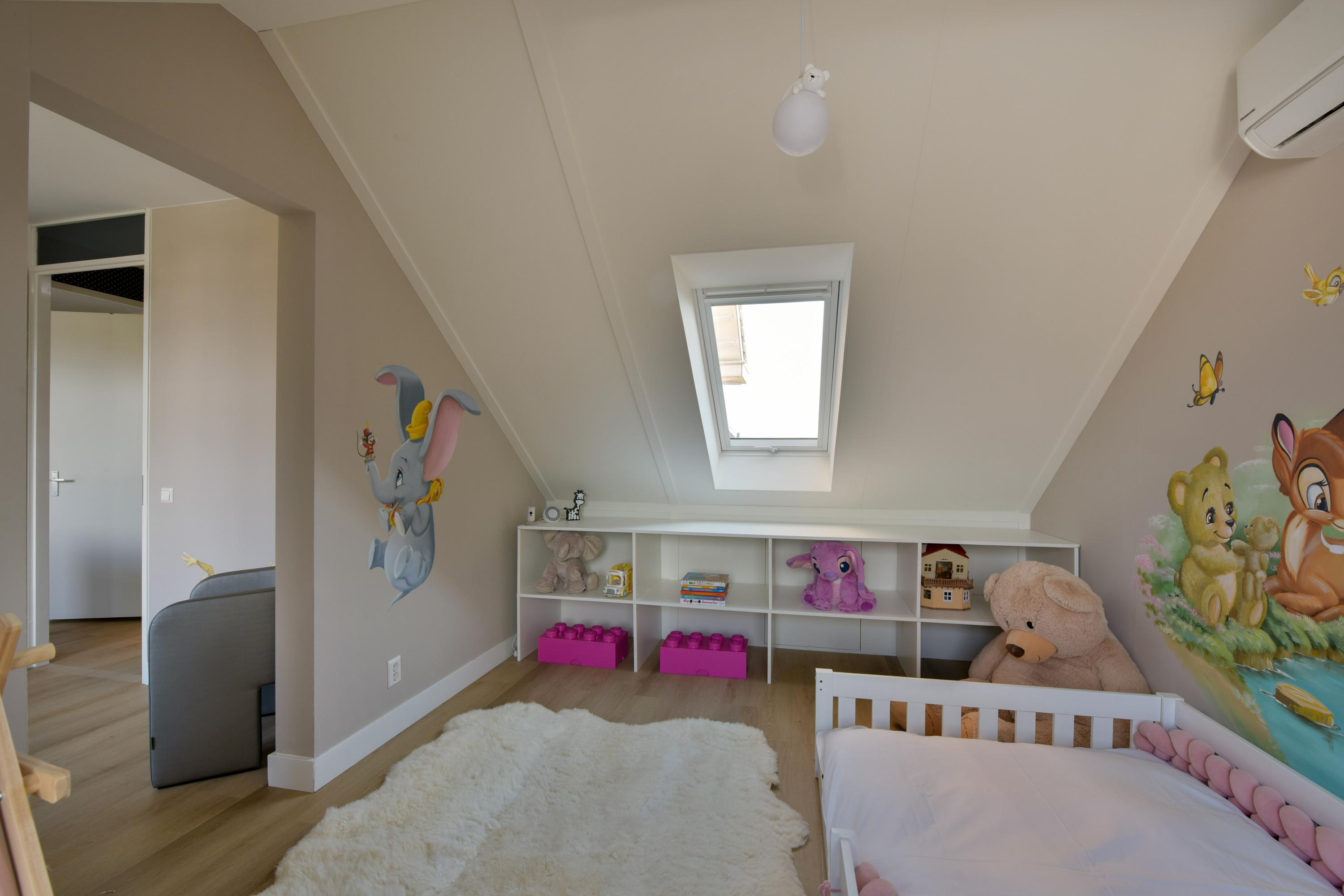 The spacious landing gives access to three generous bedrooms, all equipped with air conditioning. The largest bedroom at the rear is particularly versatile, split into two sections (this extra-large room can easily be divided into two smaller bedrooms). With a dormer providing additional light and space and plenty of storage behind knee walls and sliding doors, it serves perfectly as a master bedroom, office, or a combination of both.